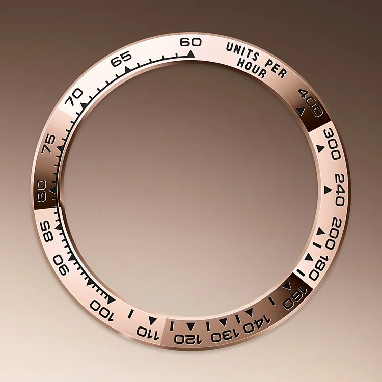 BEZEL: Fixed, with engraved tachymetric scale, in 18 ct Everose gold