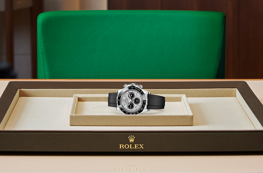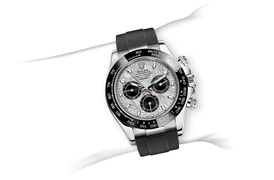 BEZEL : Black monobloc Cerachrom bezel in ceramic with moulded tachymetric scale