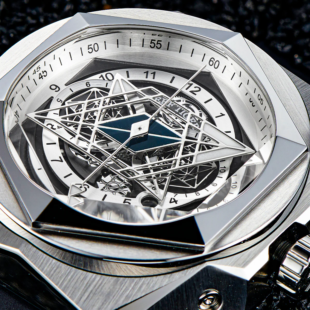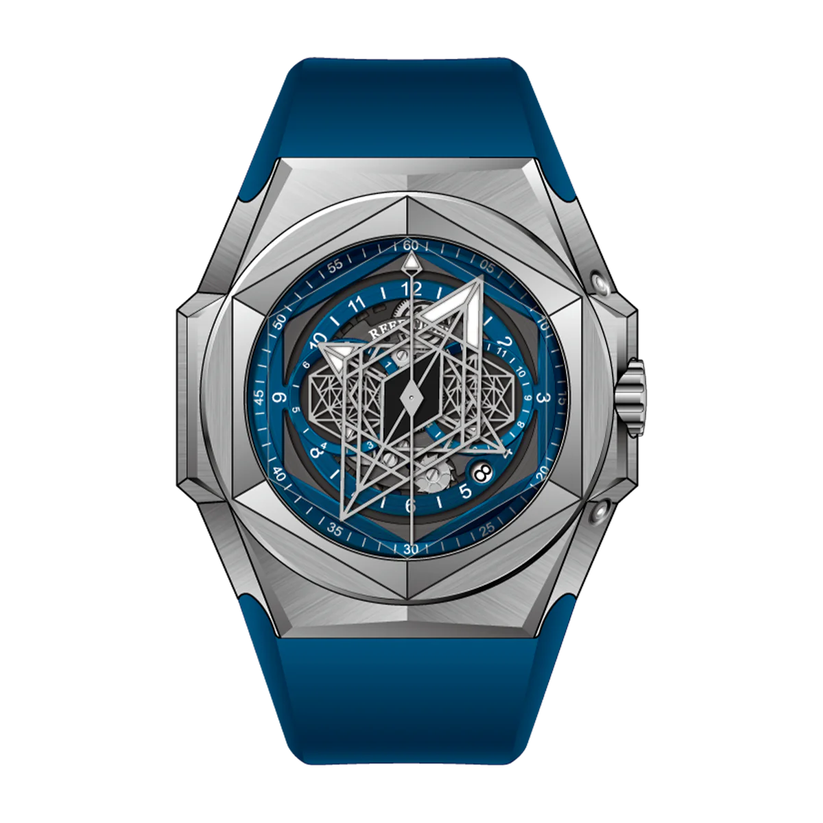 Unique Mens Blue Dial Hexagonal Multifunctional Automatic Watches - Best Luxury Reef Tiger Black Shark RGA6908 Watch