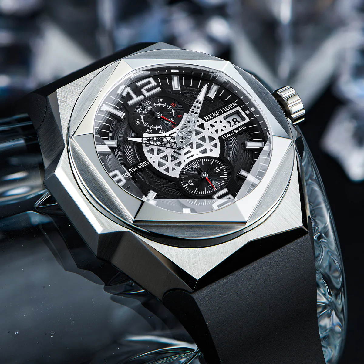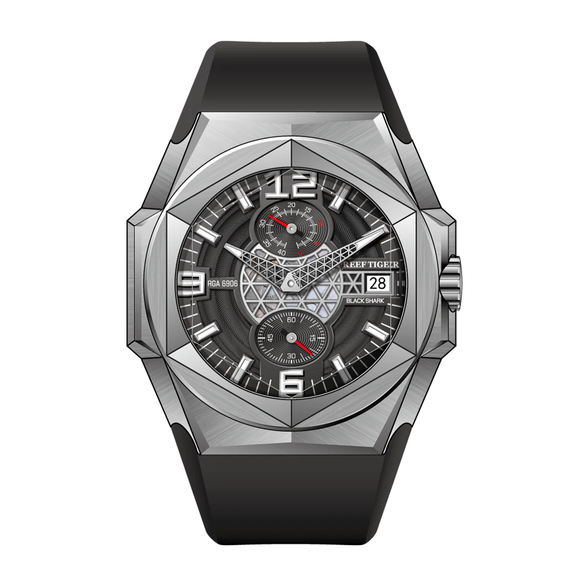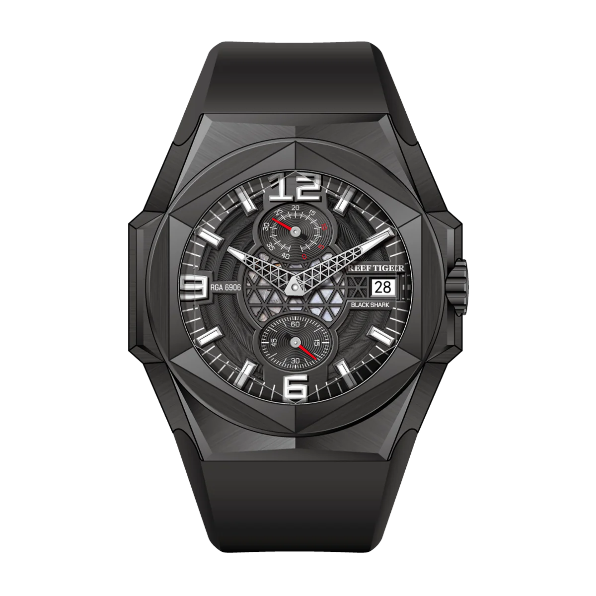 Luxury Mens Unique Automatic Watches - Reef Tiger Black Shark Hexagon RGA6908 Black Dial Automatic Mechanical Watch