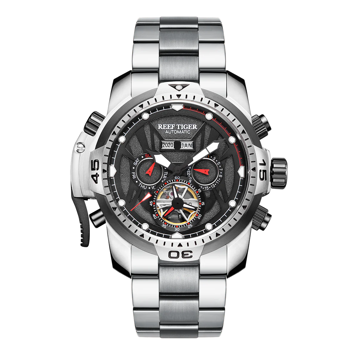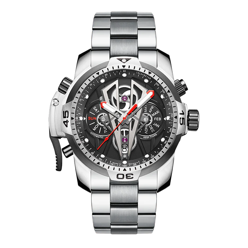 Unique Mens Sports Design Automatic Mechanical Multifunction Dial Wrist Watches -Reef Tiger Aurora Concept 2 RGA3591