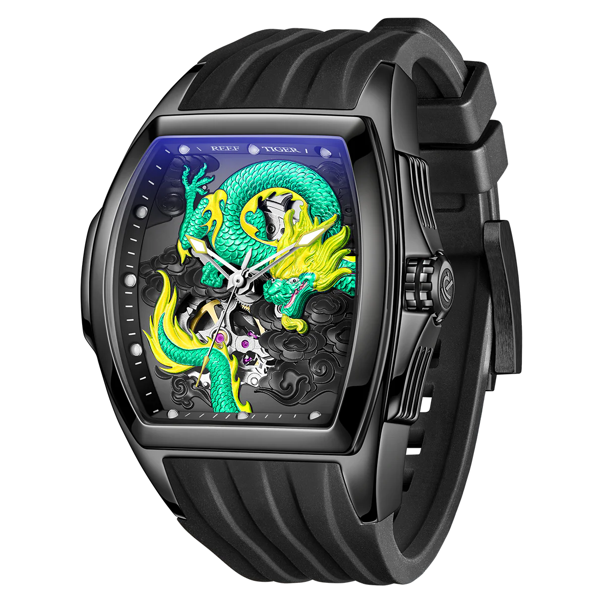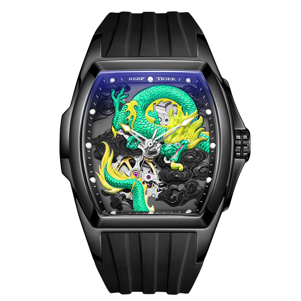 Best Luxury Unique Mens Watches for Sale - Reef Tiger RGA306 Green Color Dragon Automatic Mechanical Watch