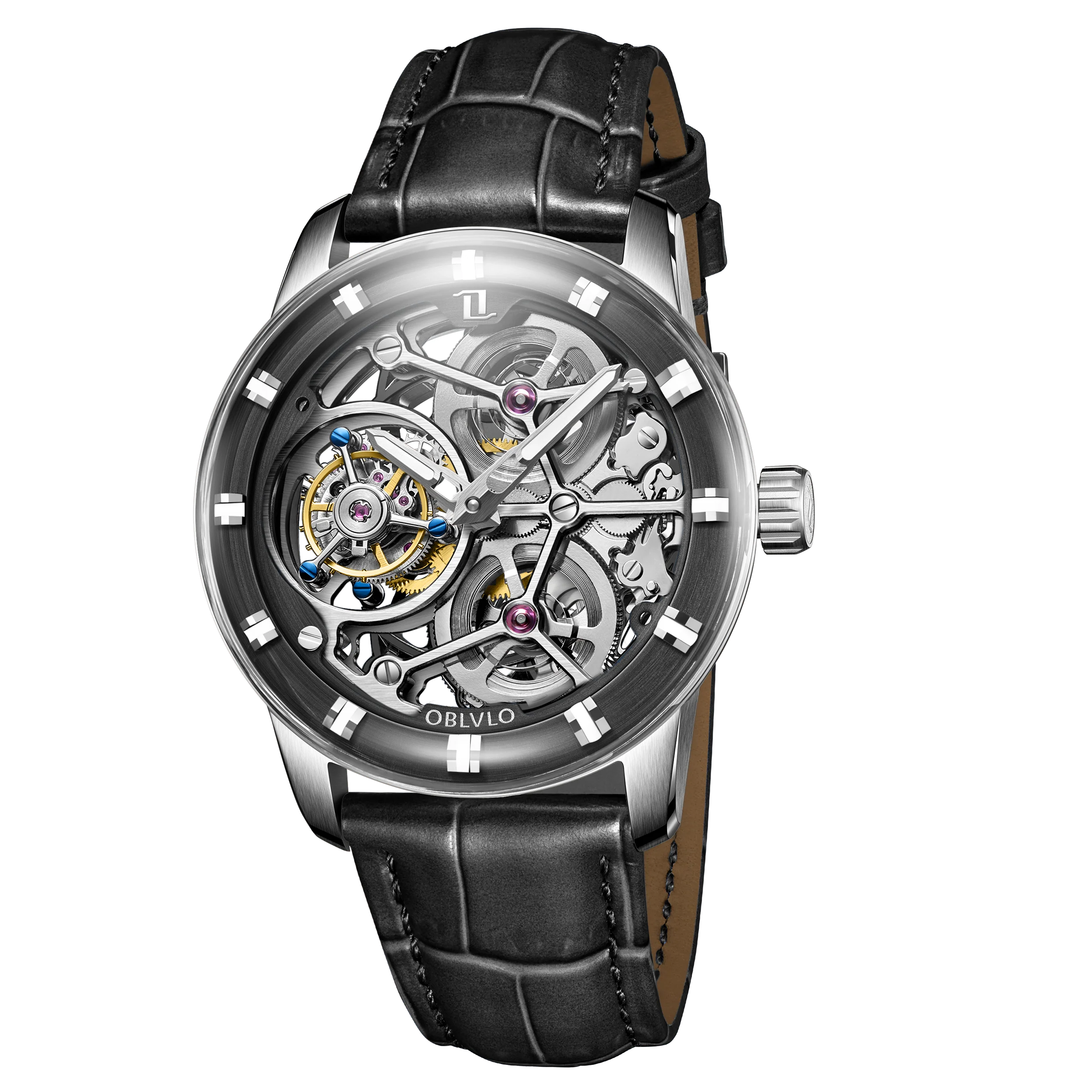 OBLVLO BLM-TRISOME 41mm Affordable Luxury Mens Automatic Watches - Unique Dial And Hands With Luminescent Watch