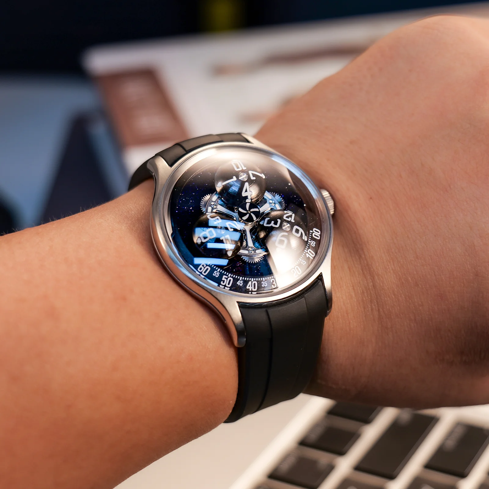 OBLVLO VM TB Mens Skeleton Tourbillon Watches - Zirconium Diamond Inlaid Bezel Watches for Men