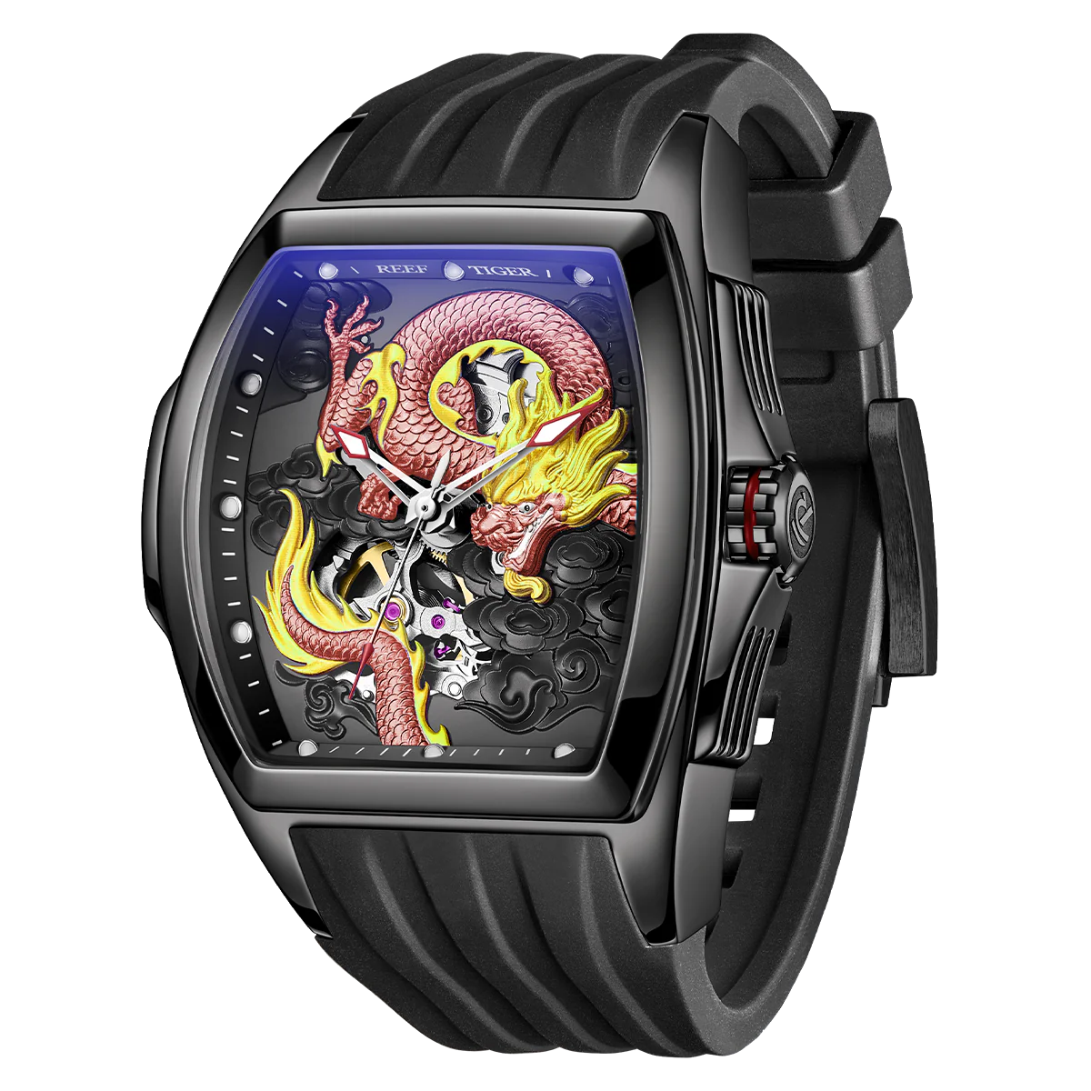 Mens Reef Tiger RGA3061 Luxury Red Automatic Skeleton Dragon Watch - Best Watches for Sale