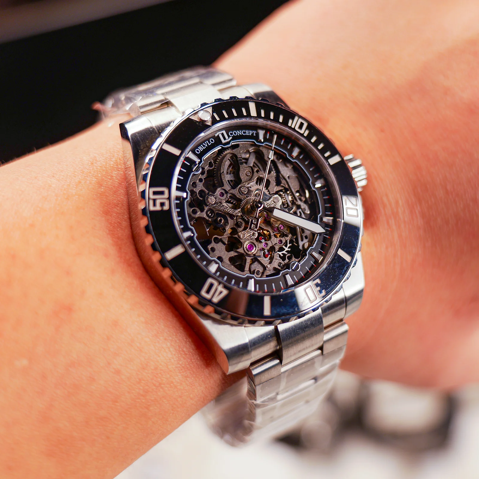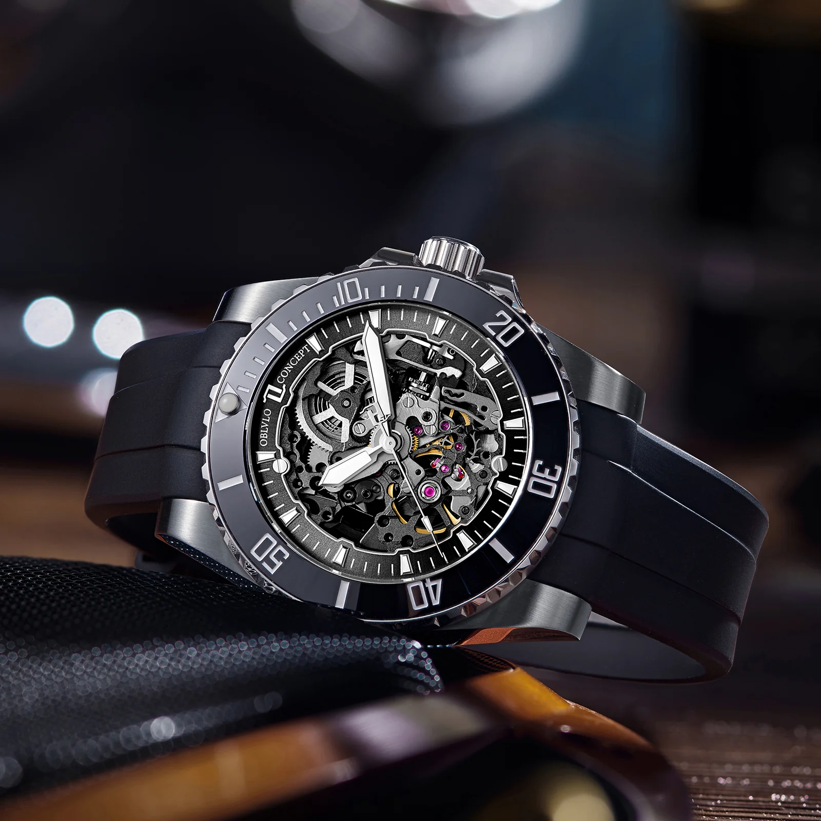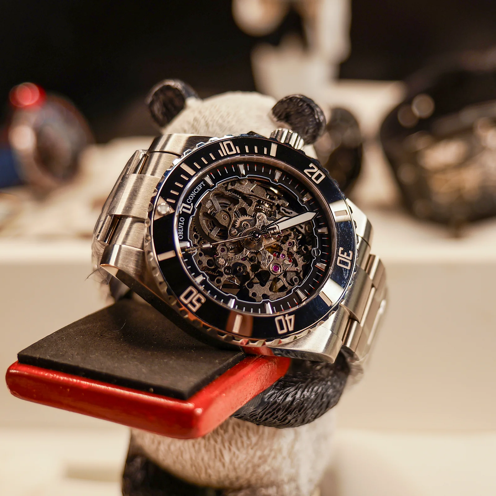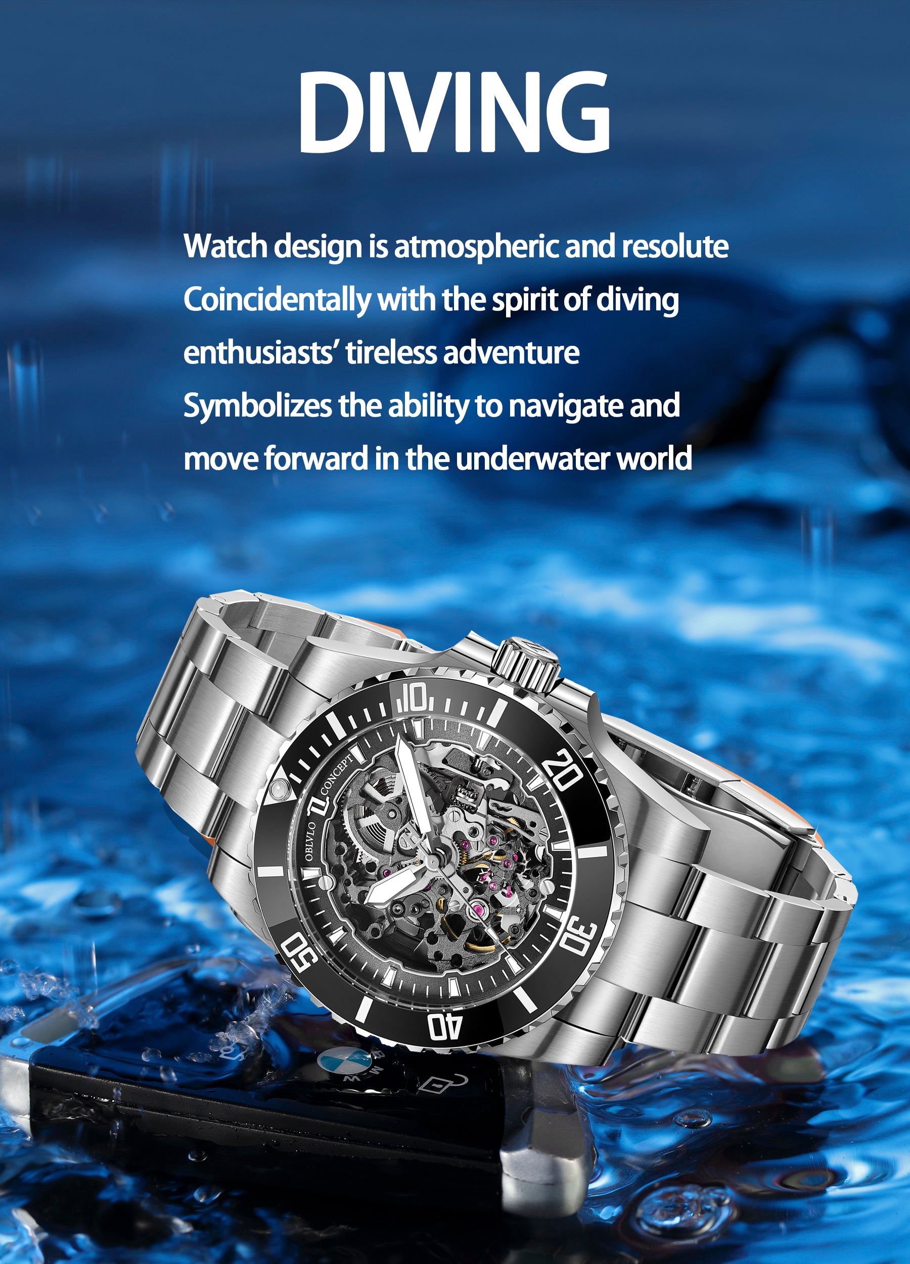 Dial Design: Skeleton perspective hardcore machinery, precision polished processing with outstanding texture smooth lines and full gloss. See-through powerful mechanical movement, insight into the charm of machinery.