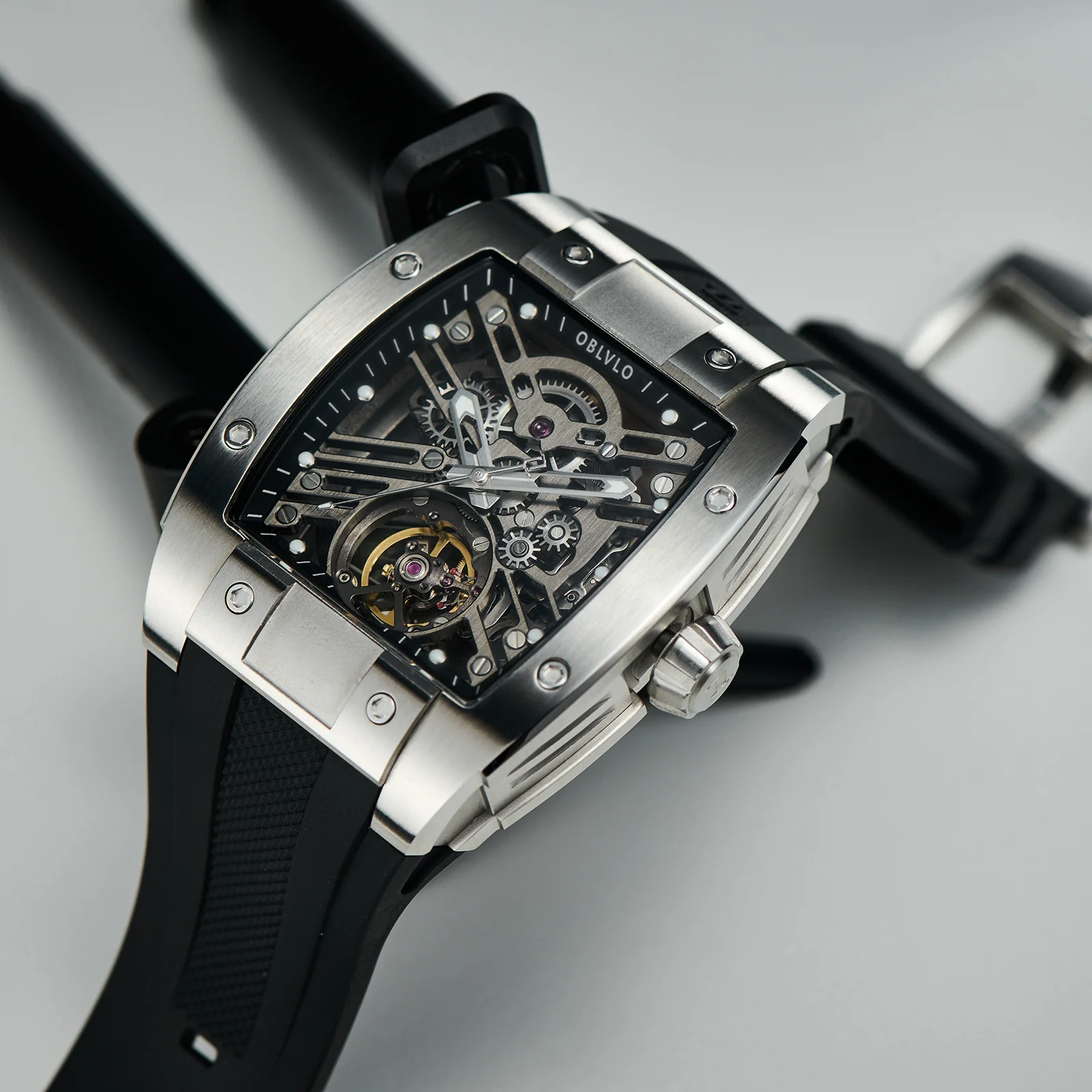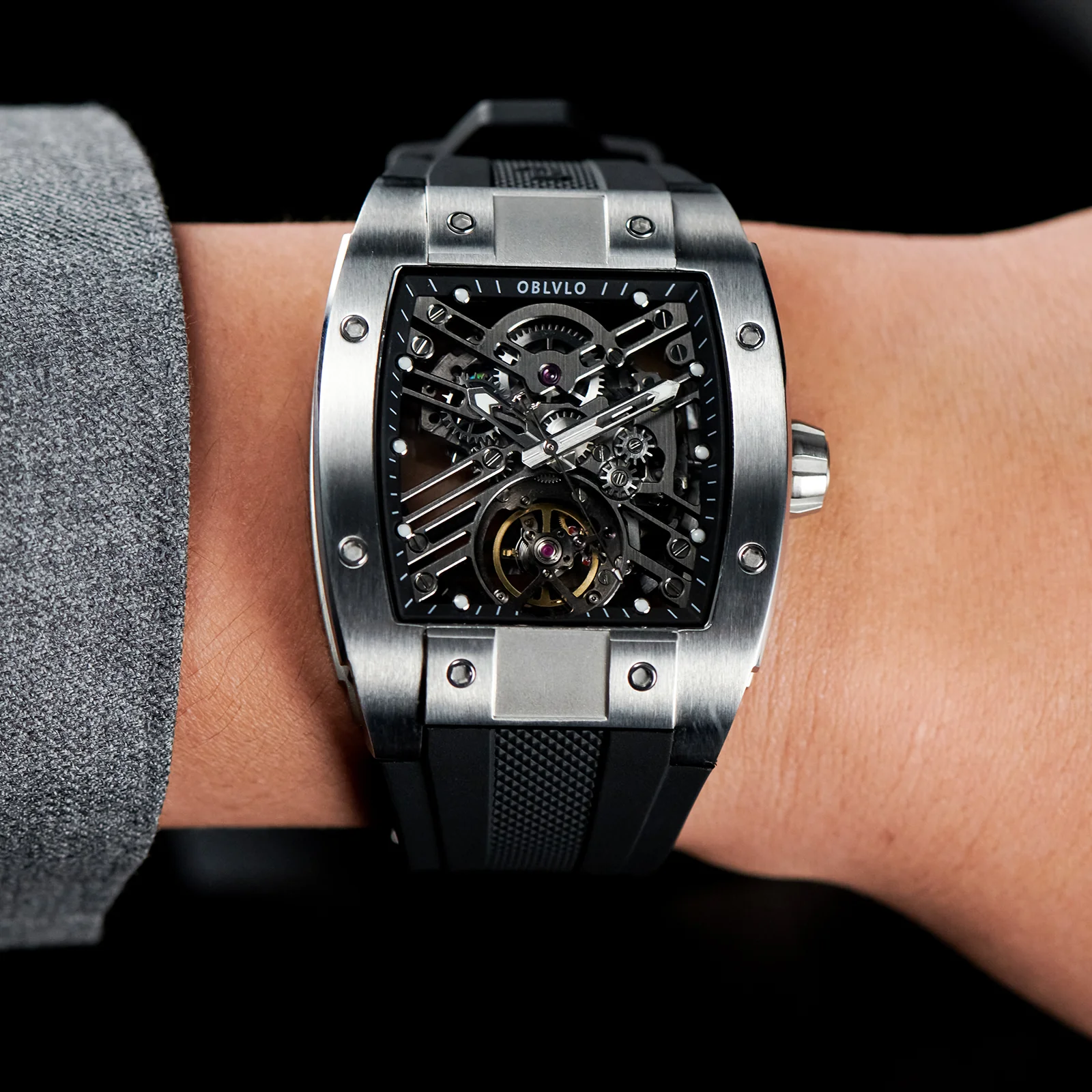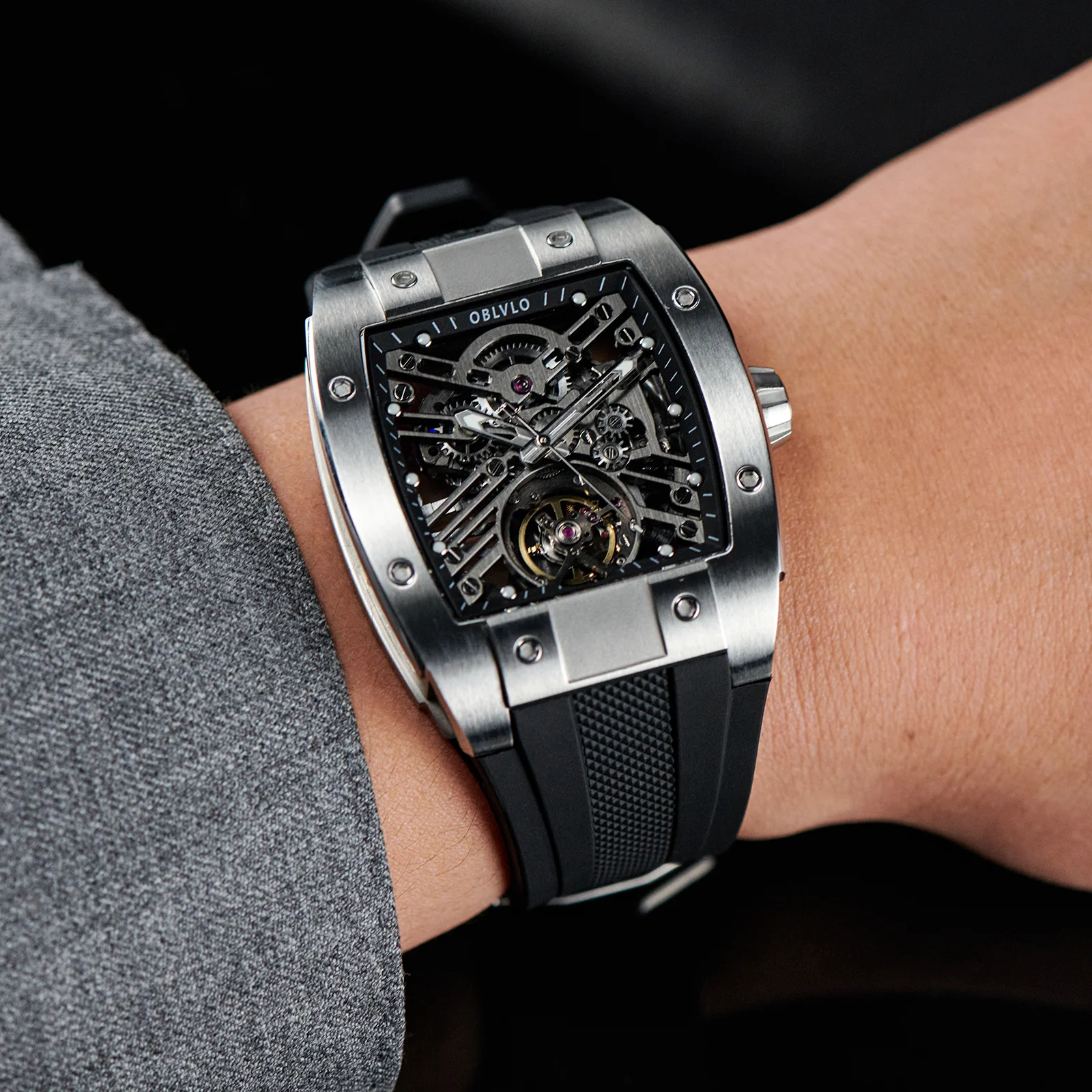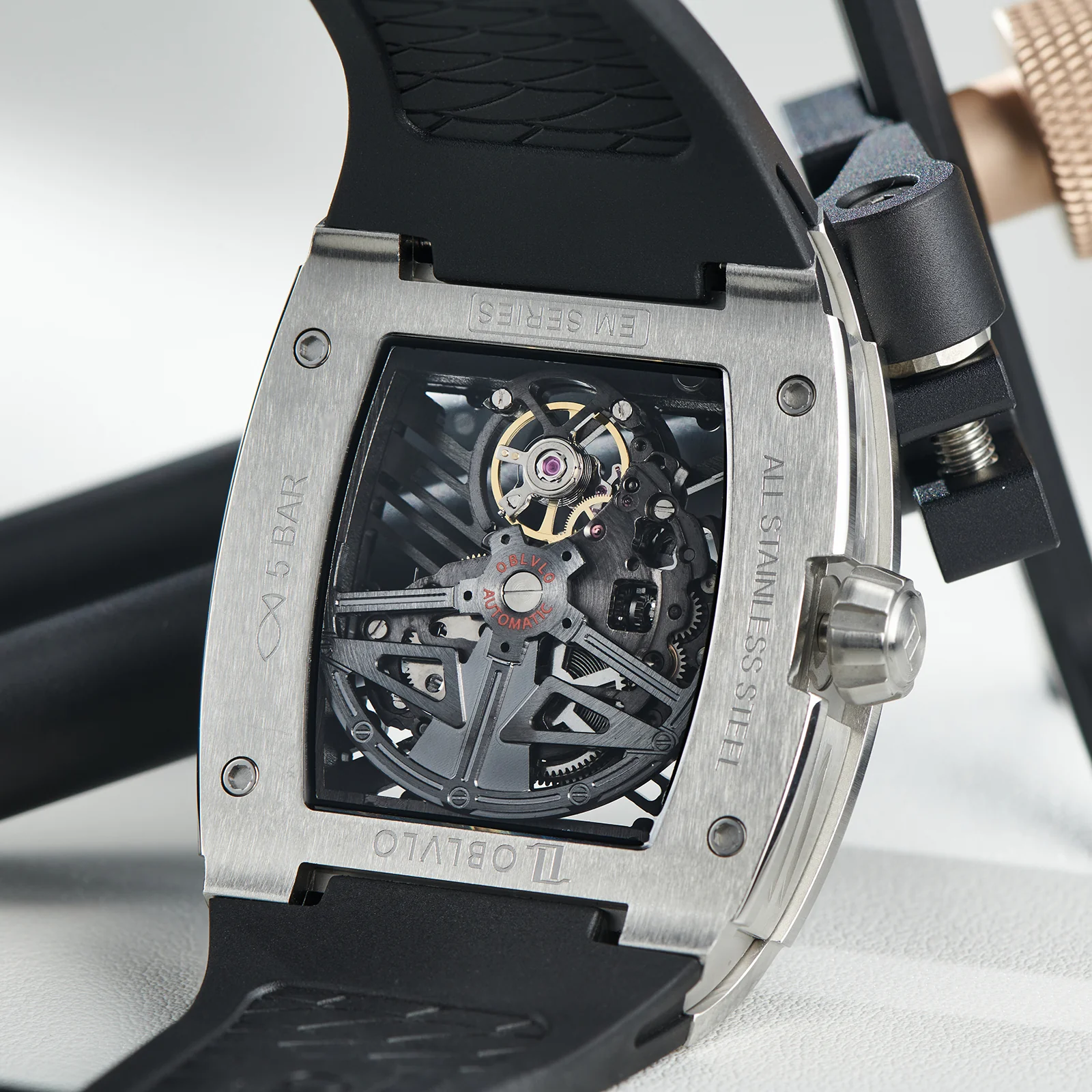 Dial Design: Unique skeleton design. Tonneau stainless steel case full-hollow dial, see the metal and sharp lines, hear the heartbeat of a machine, feel the mechanical aesthetics in inches.