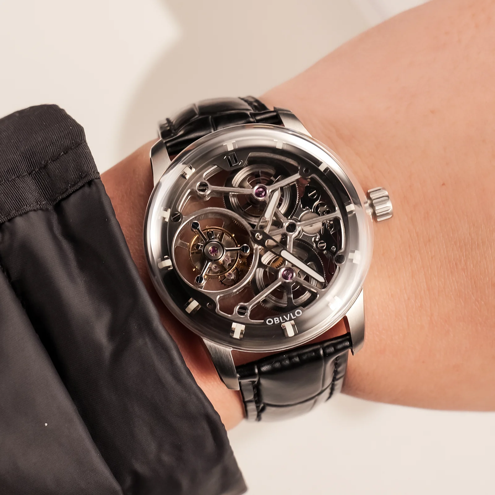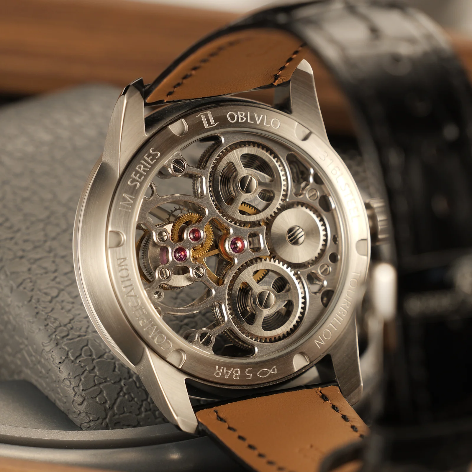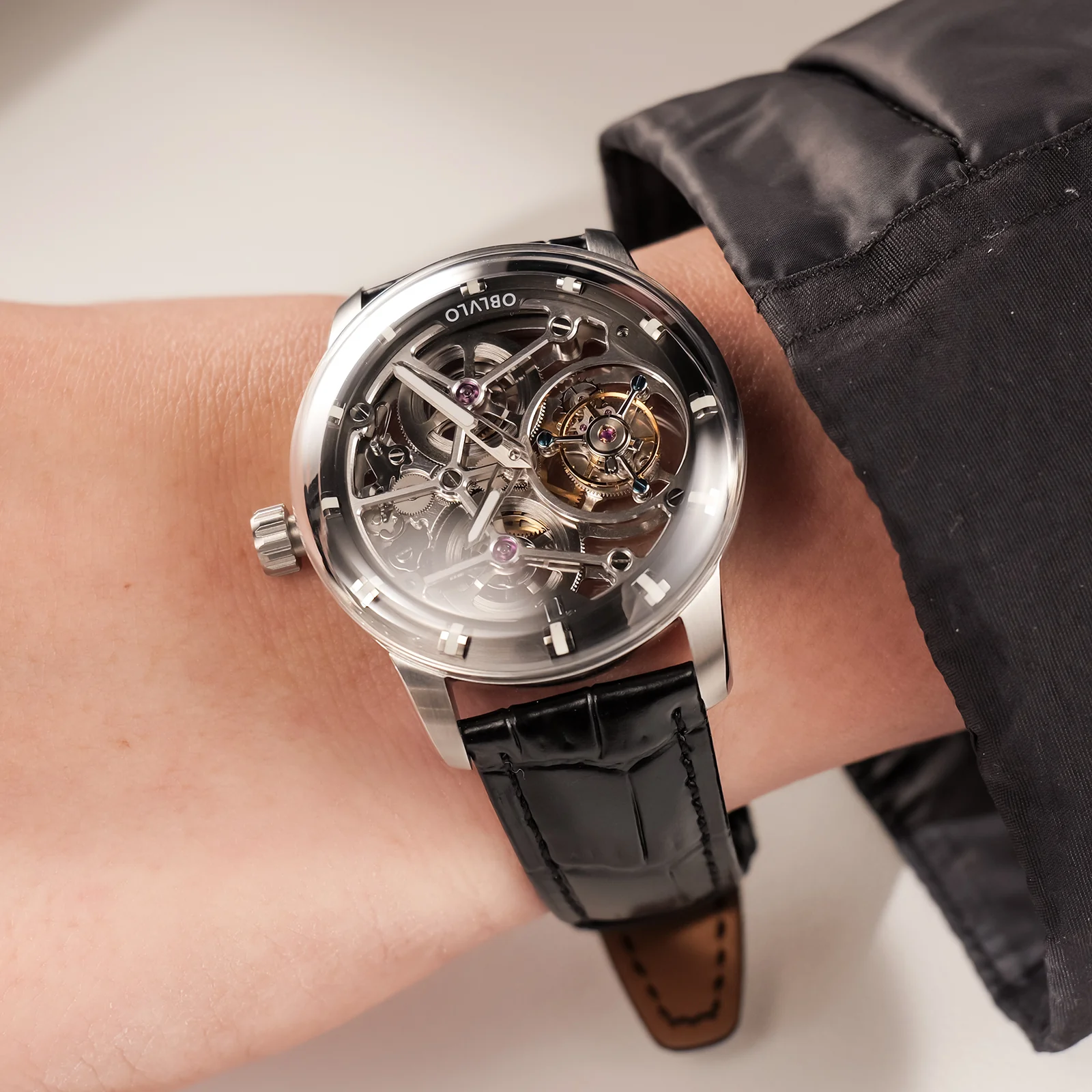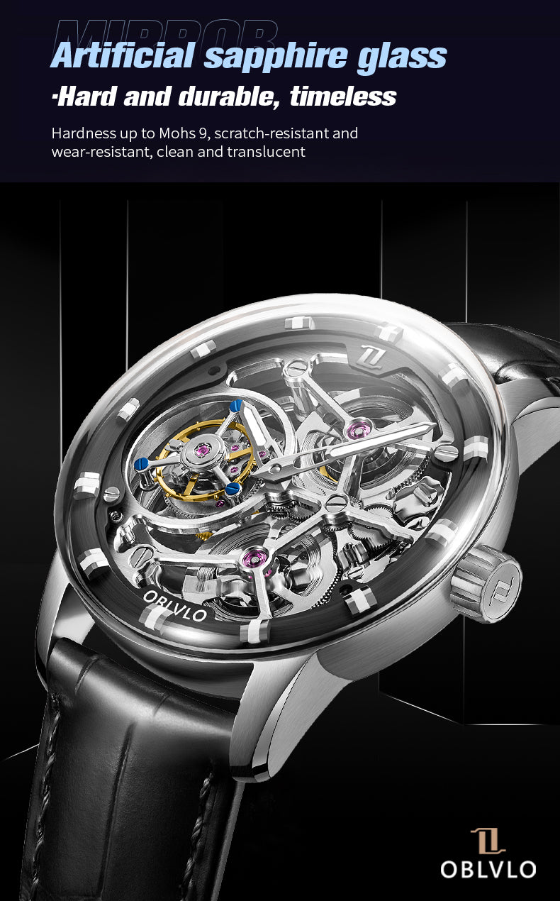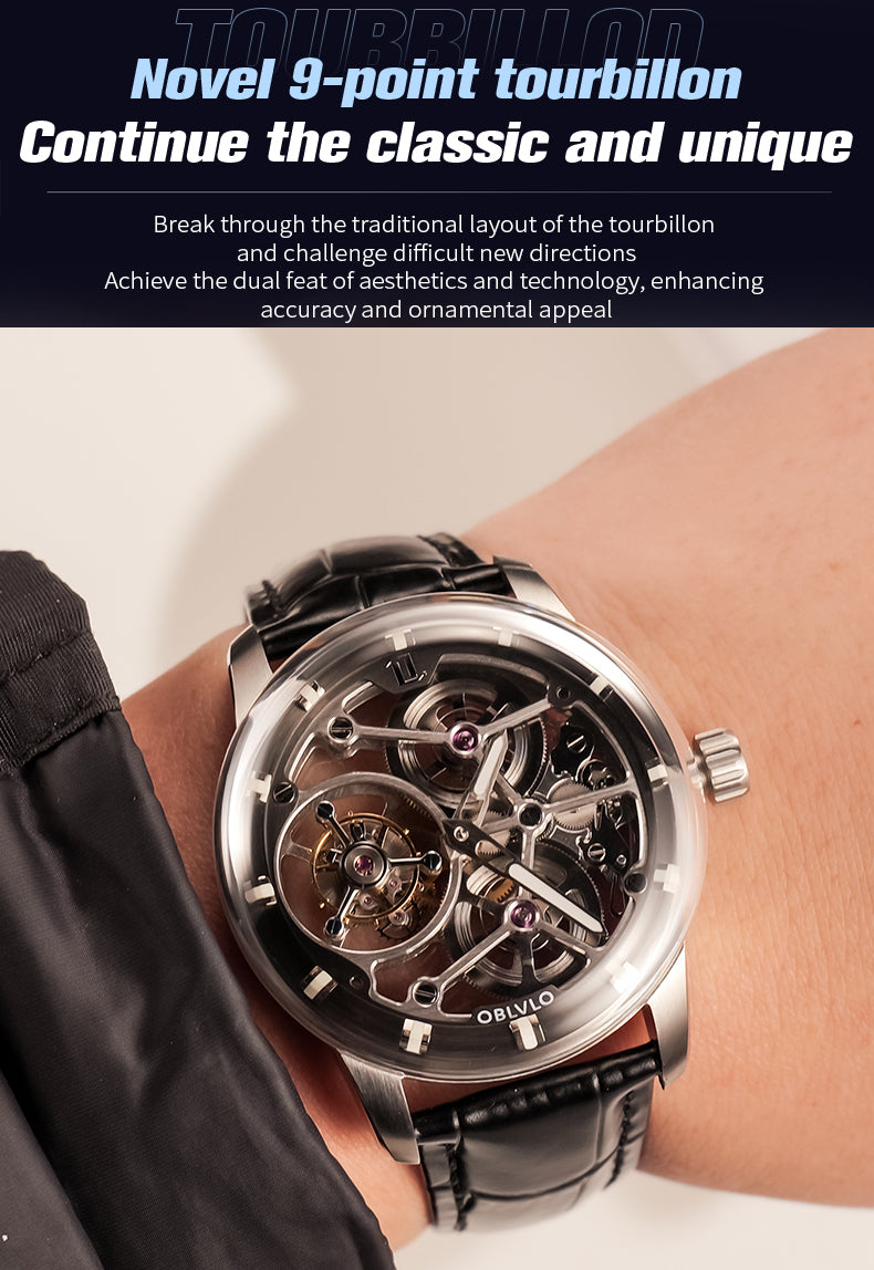 Dial Design: The dial of a sculptor's watch is first carved with a diagonal pattern on the main dial. Hollow out at 9 O'clock position, with smooth and delicate edges. The precision steel case continues the simple lines of the OBLVLO OPORO ARTIST'S watch.