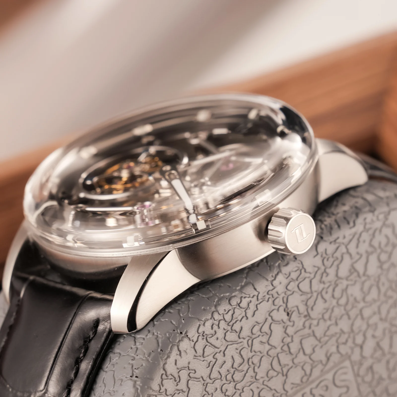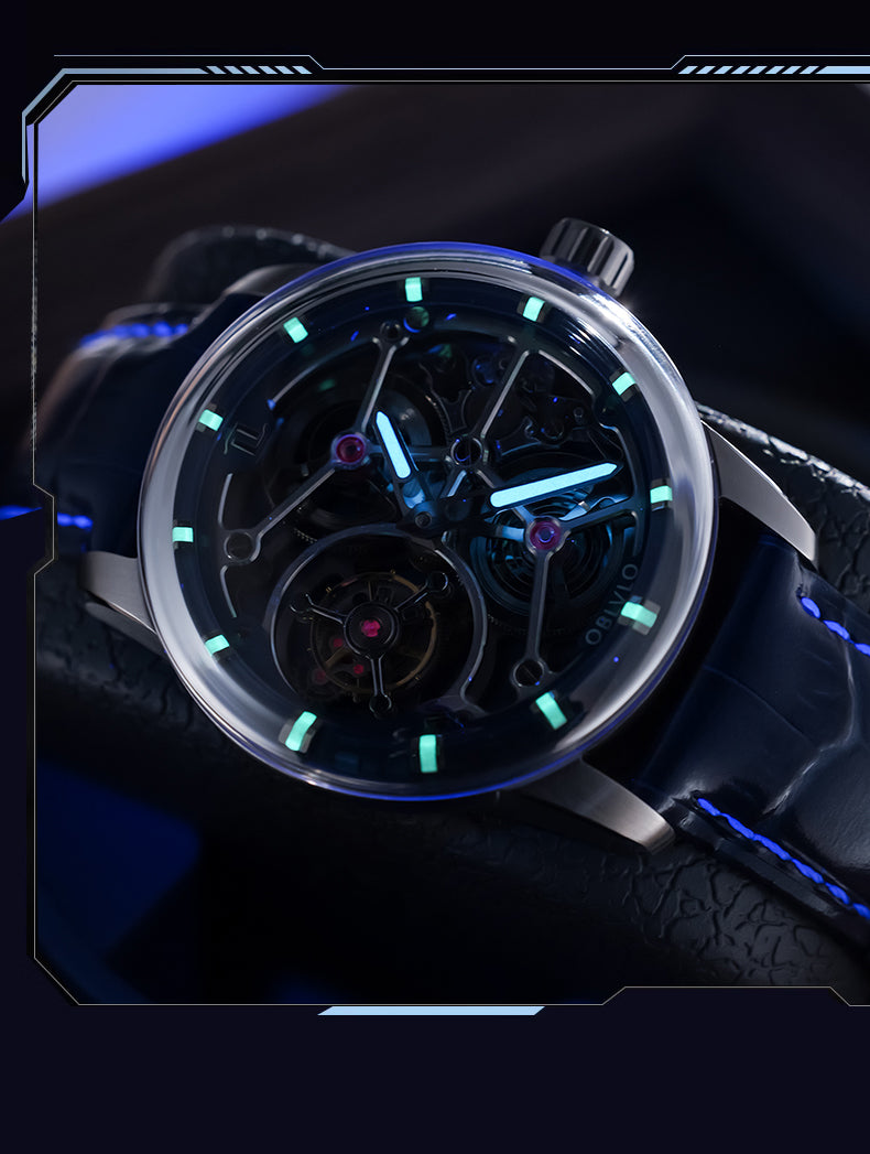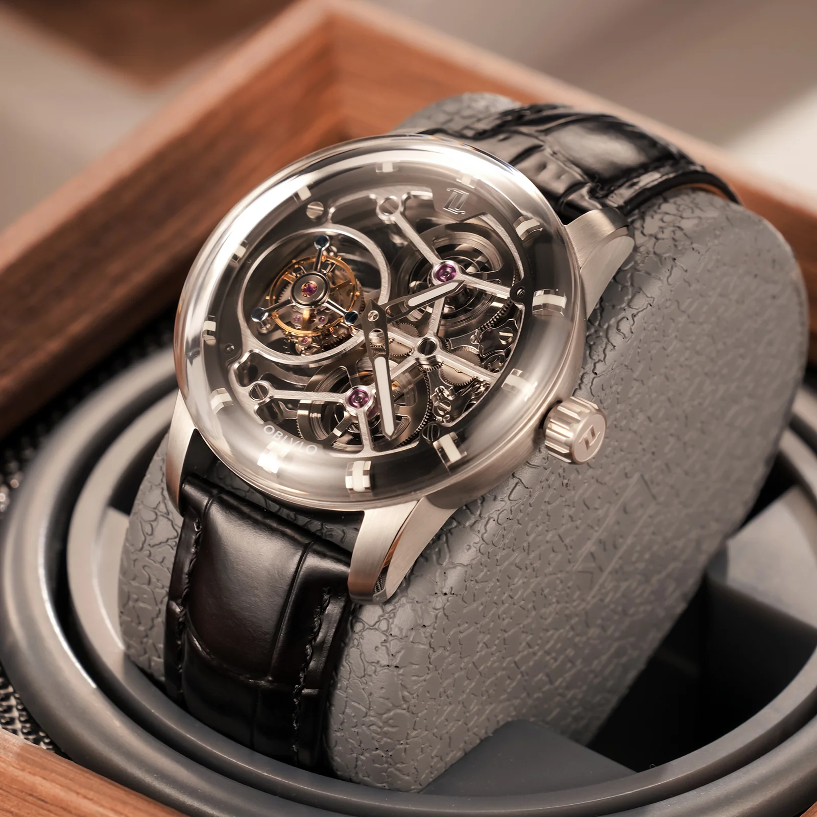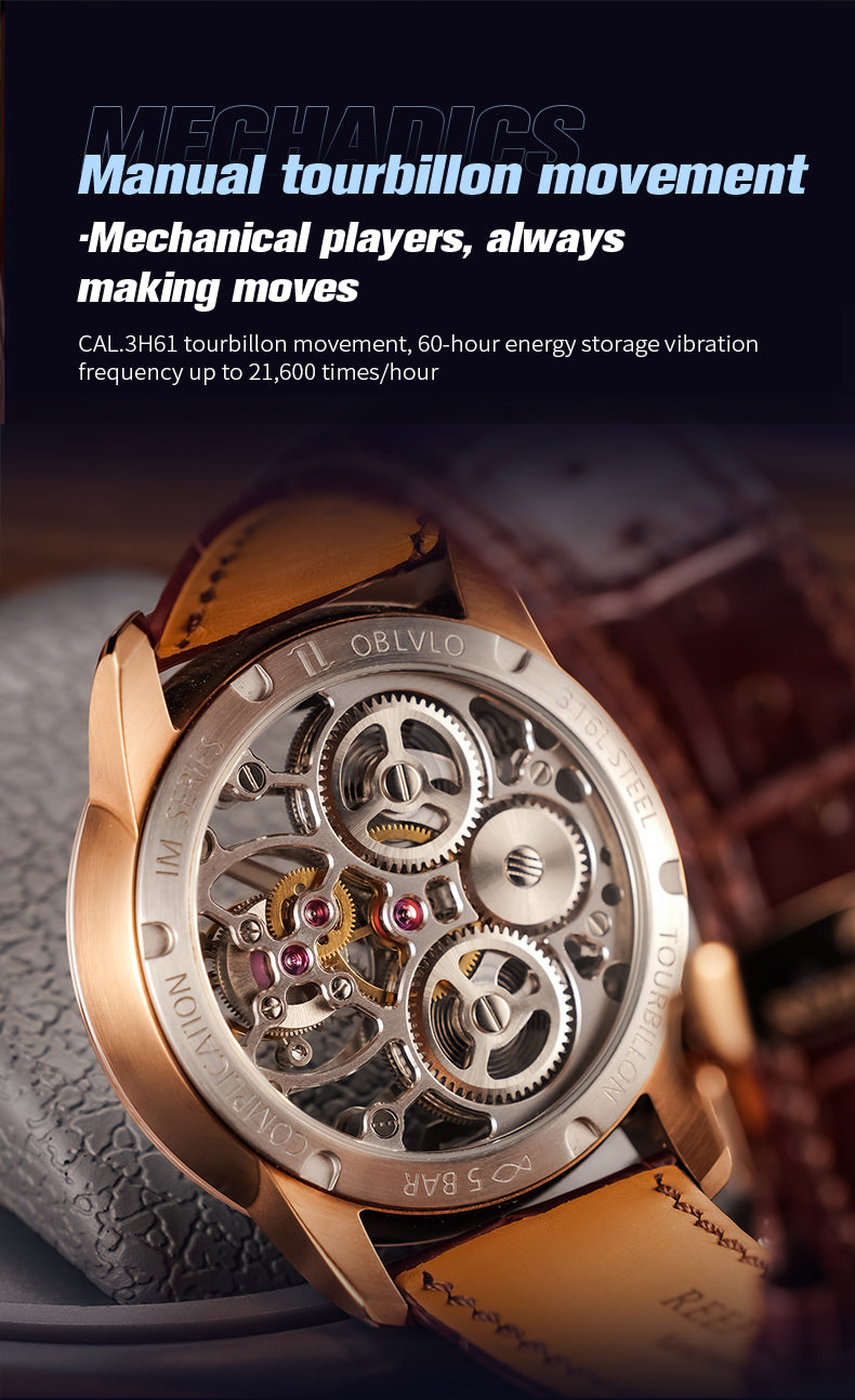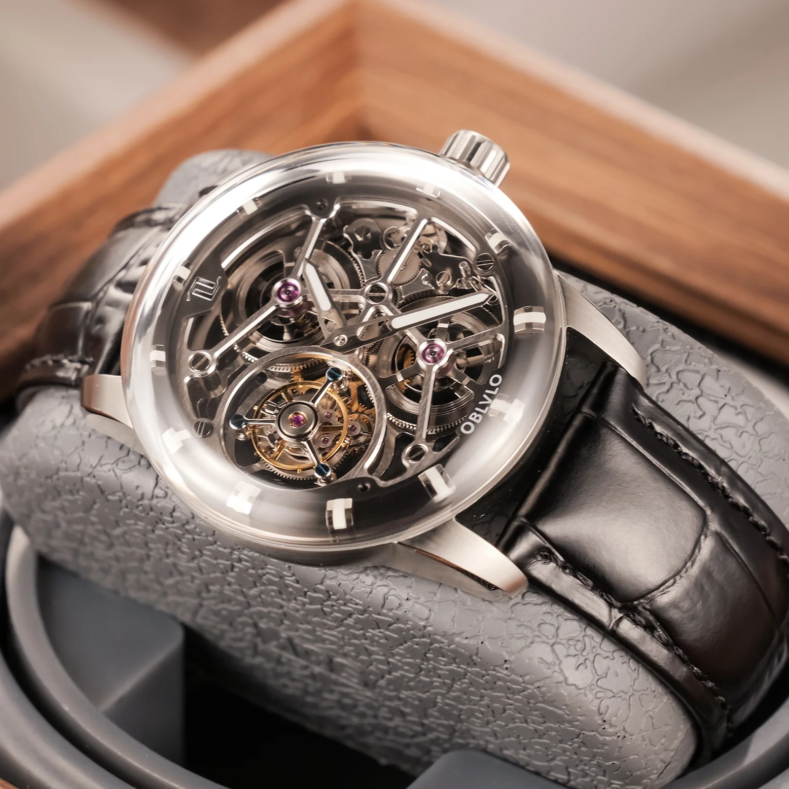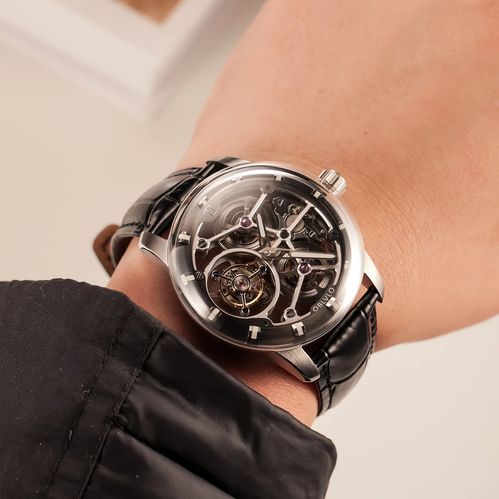 Dial Design: The dial of a sculptor's watch is first carved with a diagonal pattern on the main dial. Hollow out at 9 O'clock position, with smooth and delicate edges. The precision steel case continues the simple lines of the OBLVLO OPORO ARTIST'S watch.