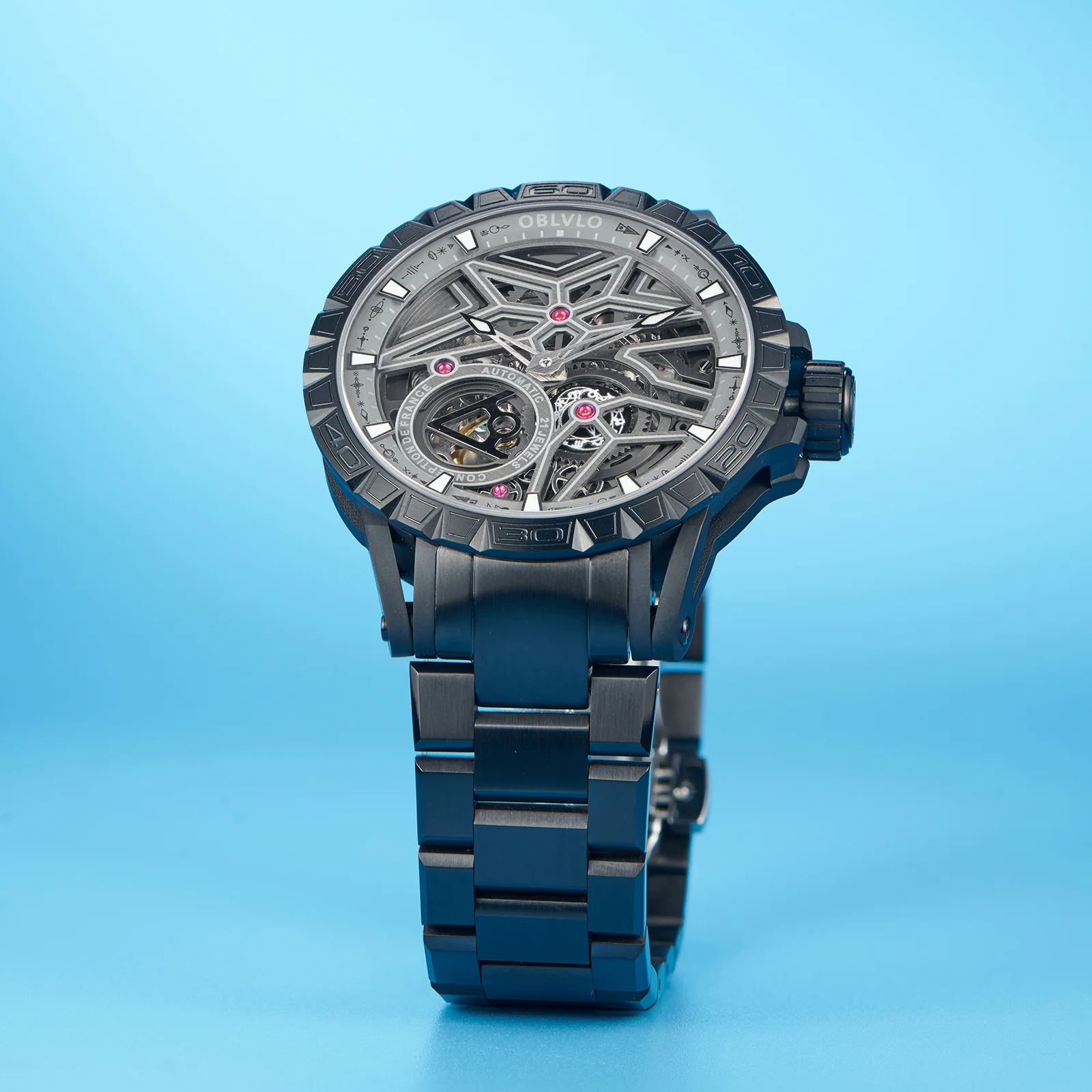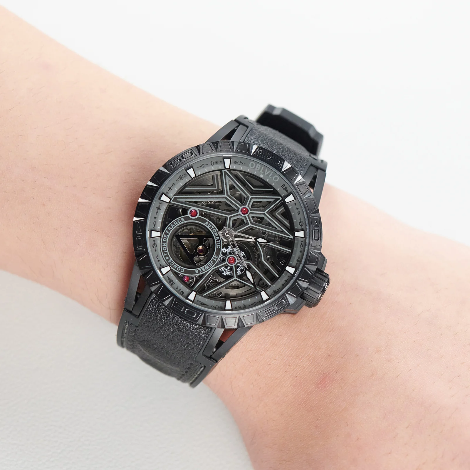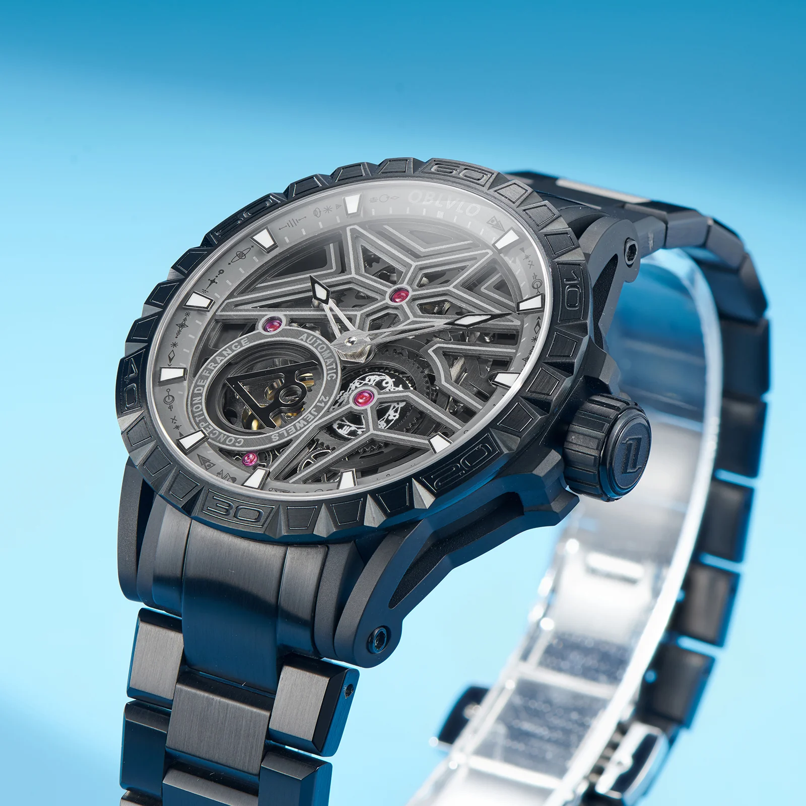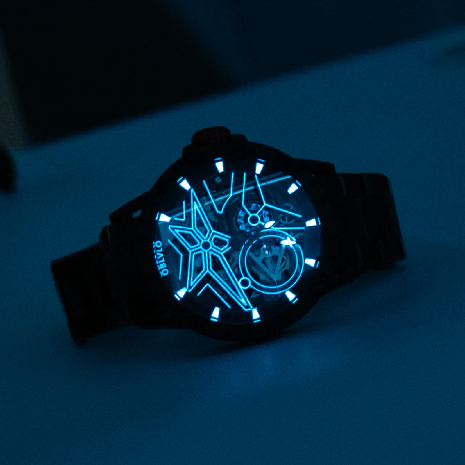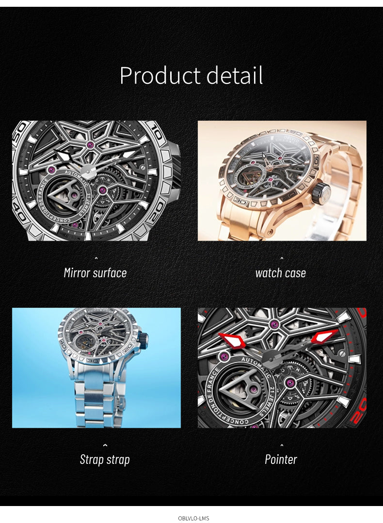 Dial Design: Panoramic skeleton mechanical design with super luminous, platinum-plated steel hands.12 constellations plate It's second hand of a watch.