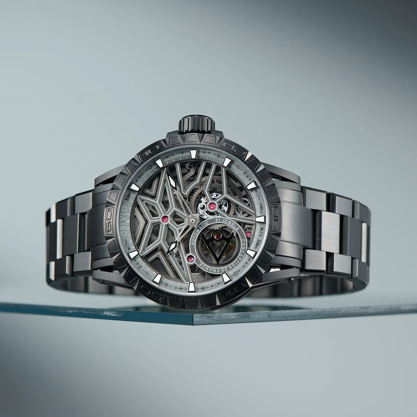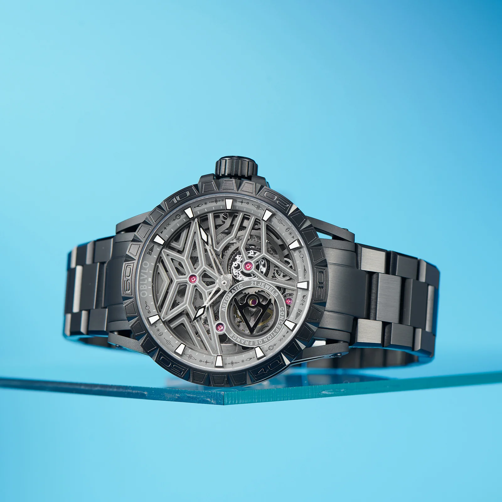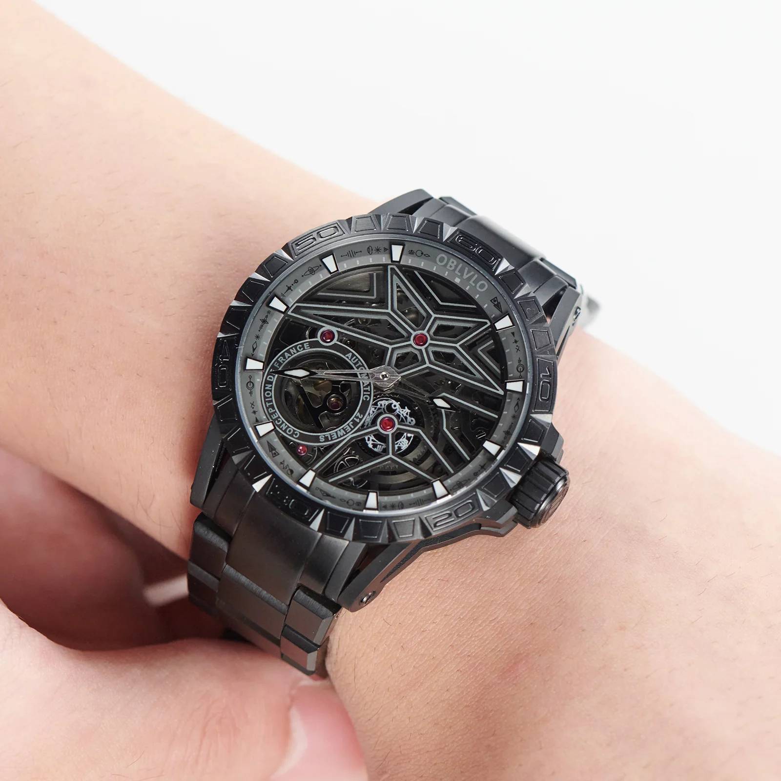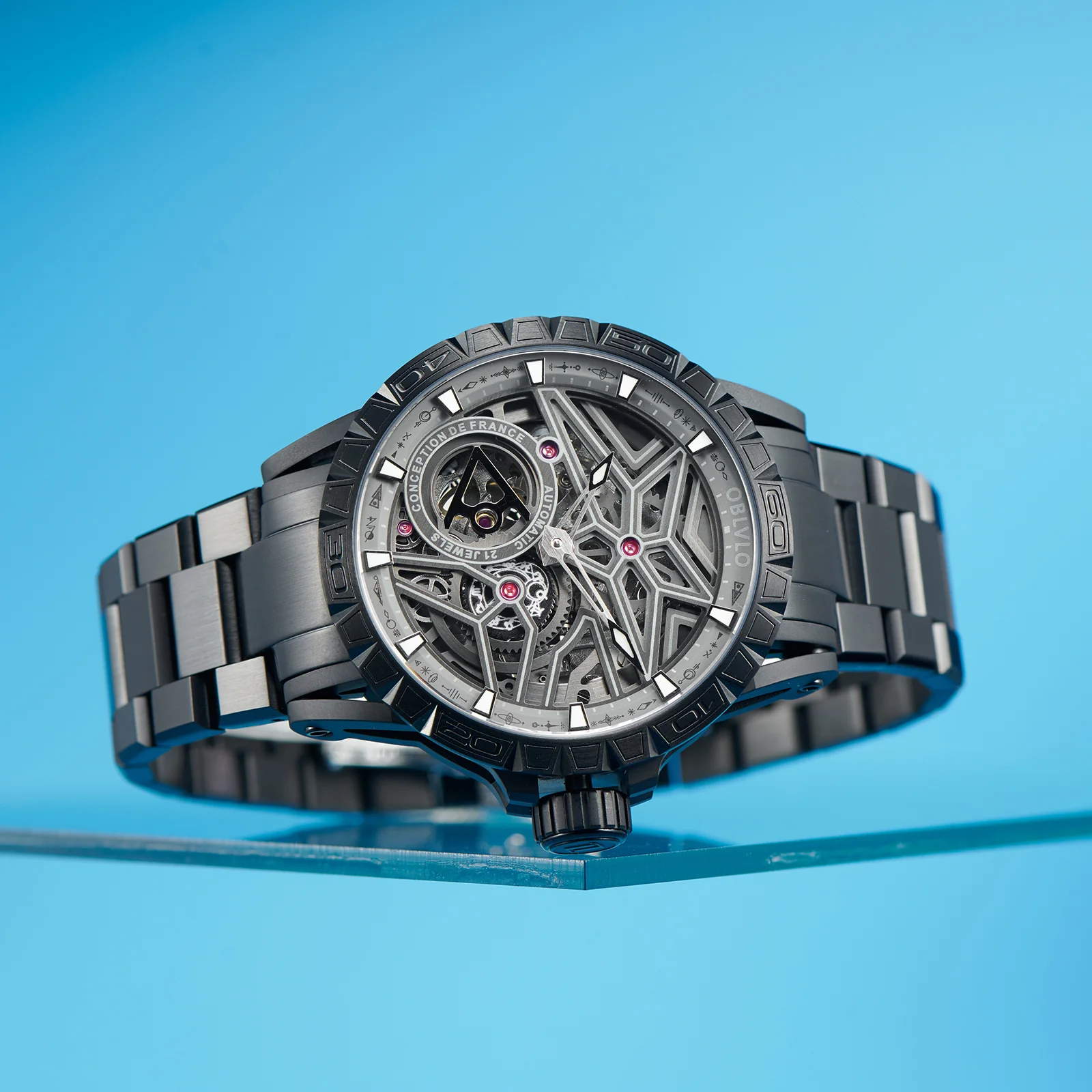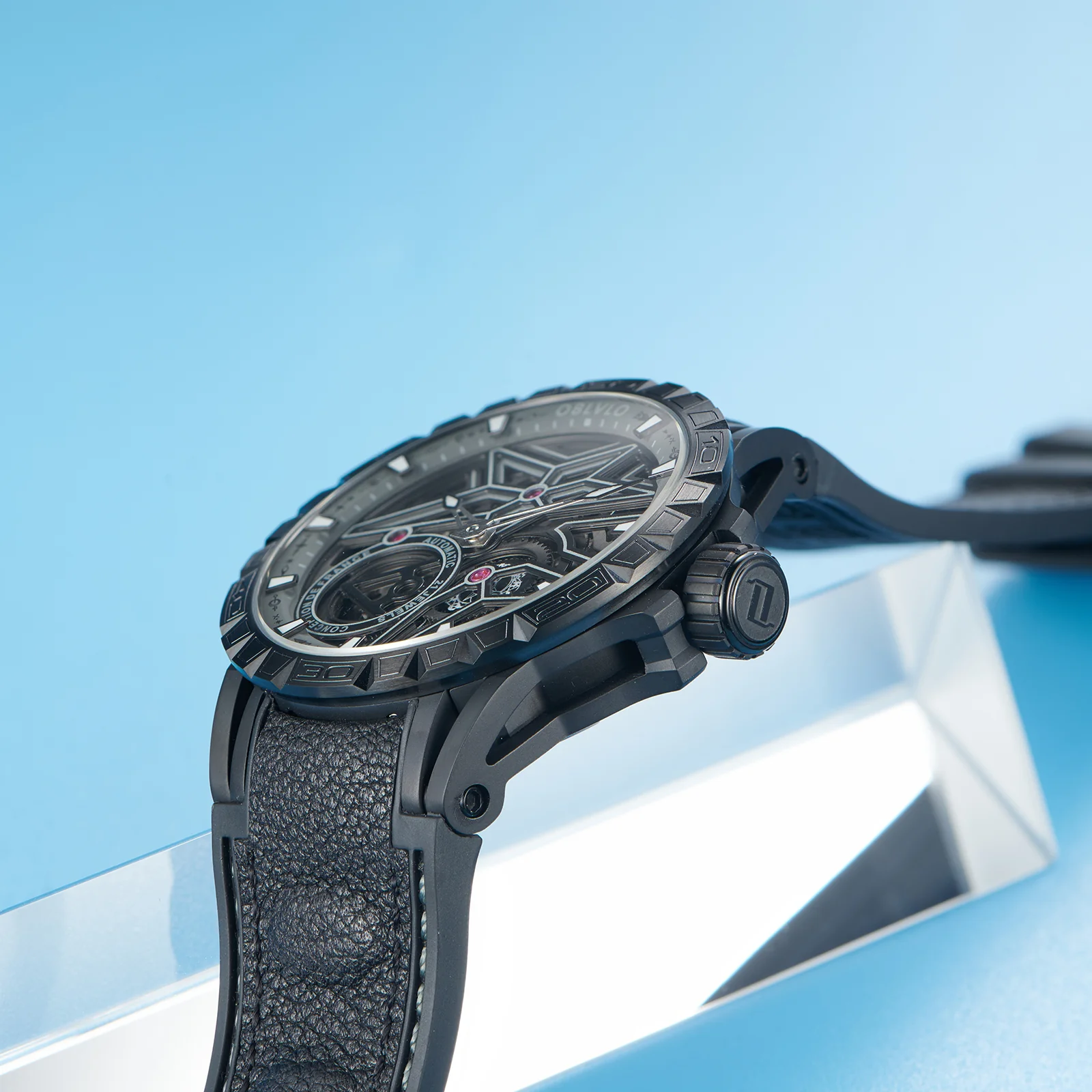 Dial Design: Panoramic skeleton mechanical design with super luminous, platinum-plated steel hands.12 constellations plate It's second hand of a watch.