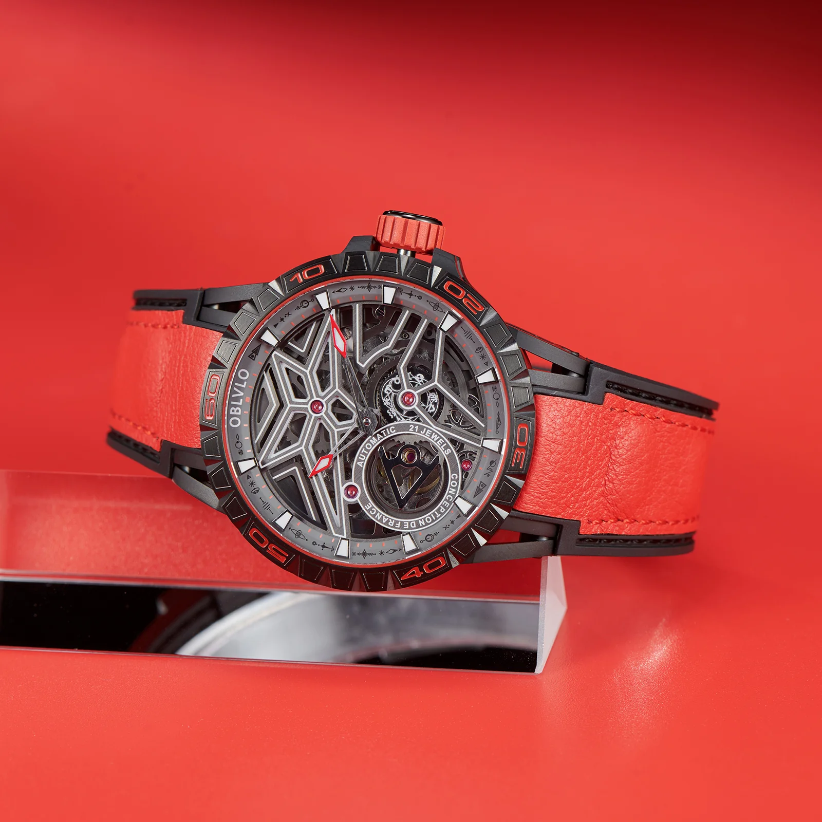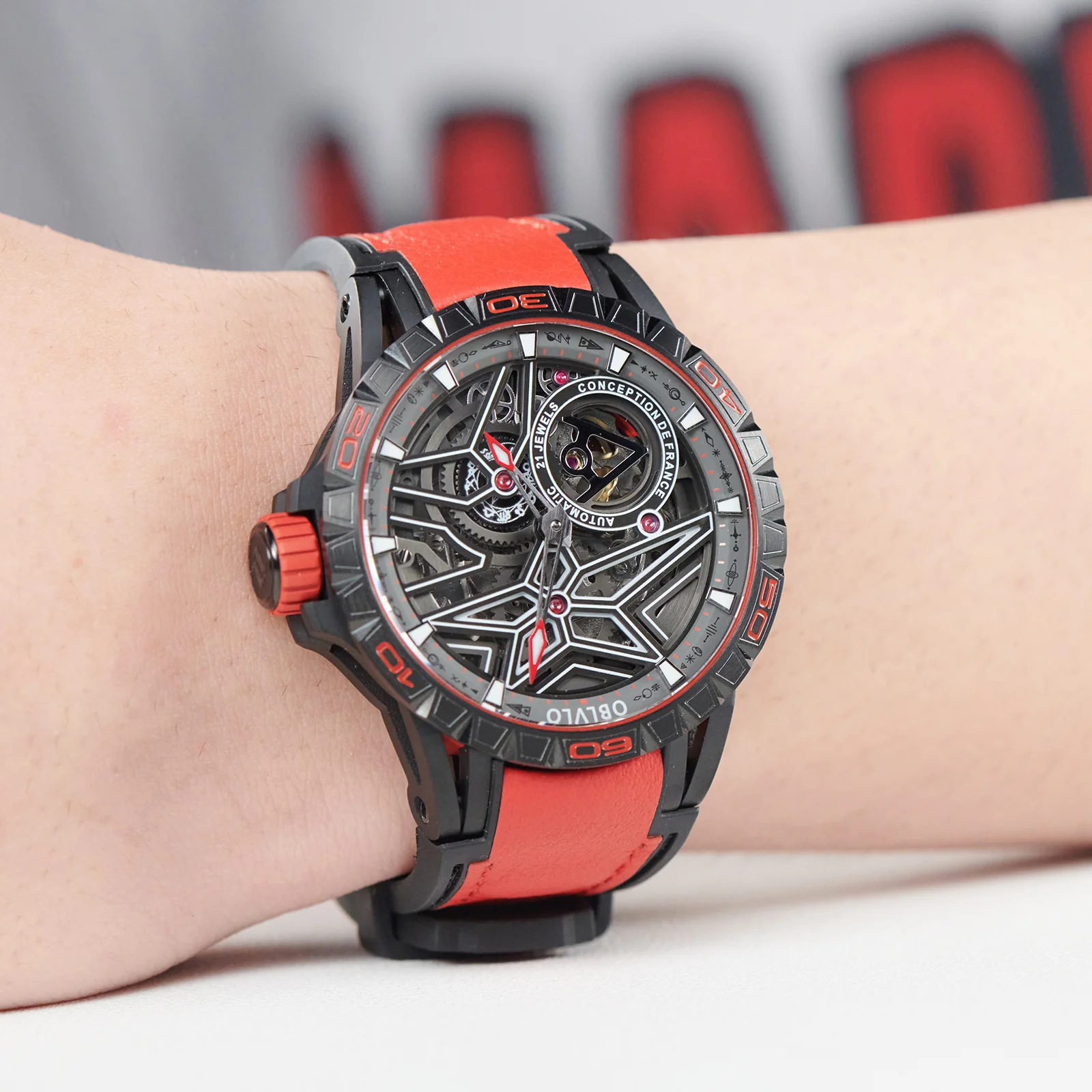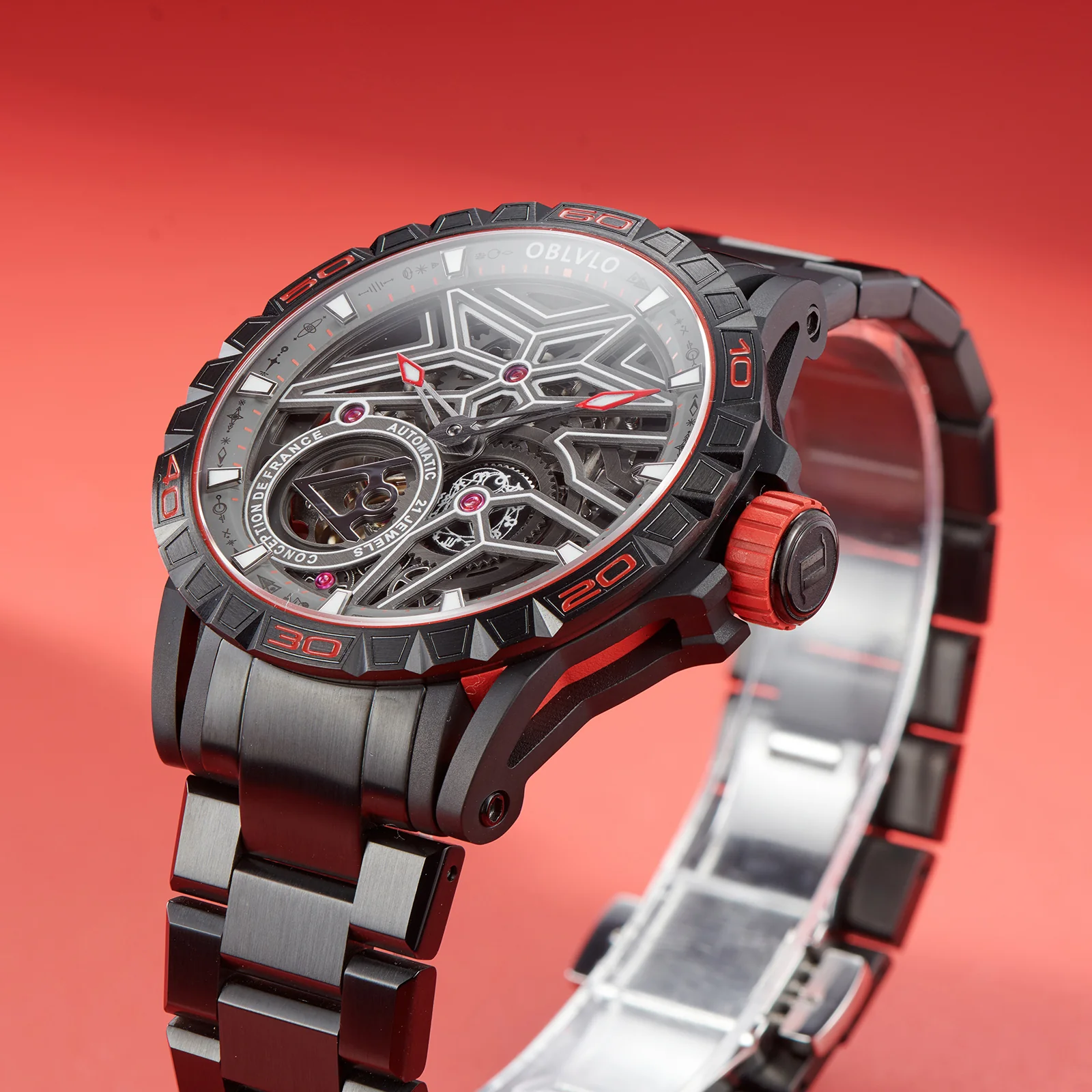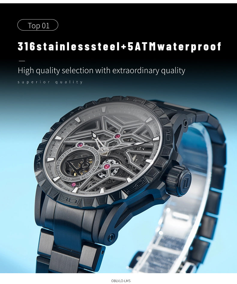 Dial Design: Panoramic skeleton mechanical design with super luminous, platinum-plated steel hands.12 constellations plate It's second hand of a watch.