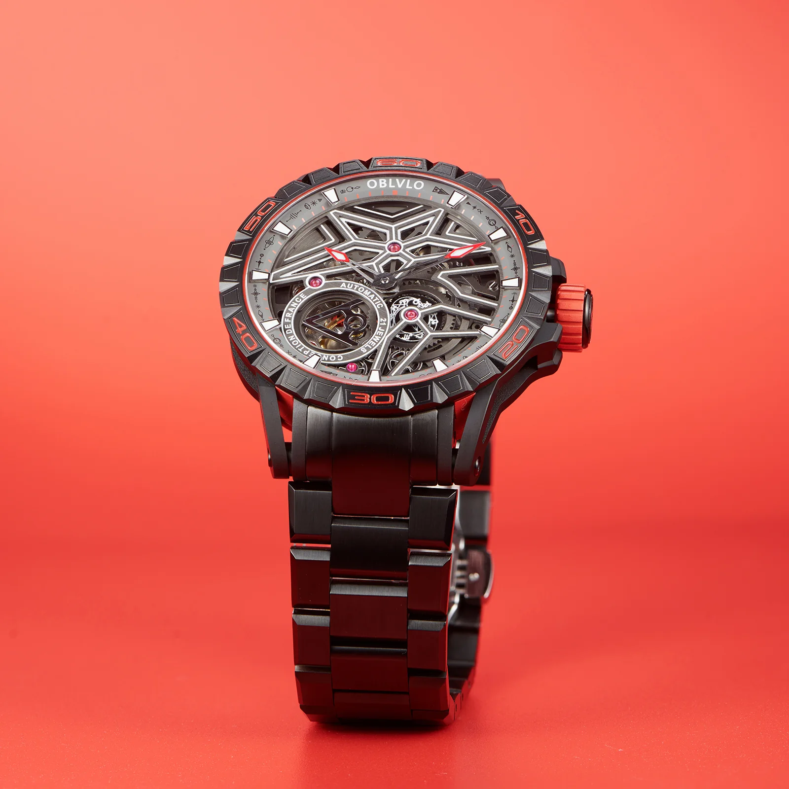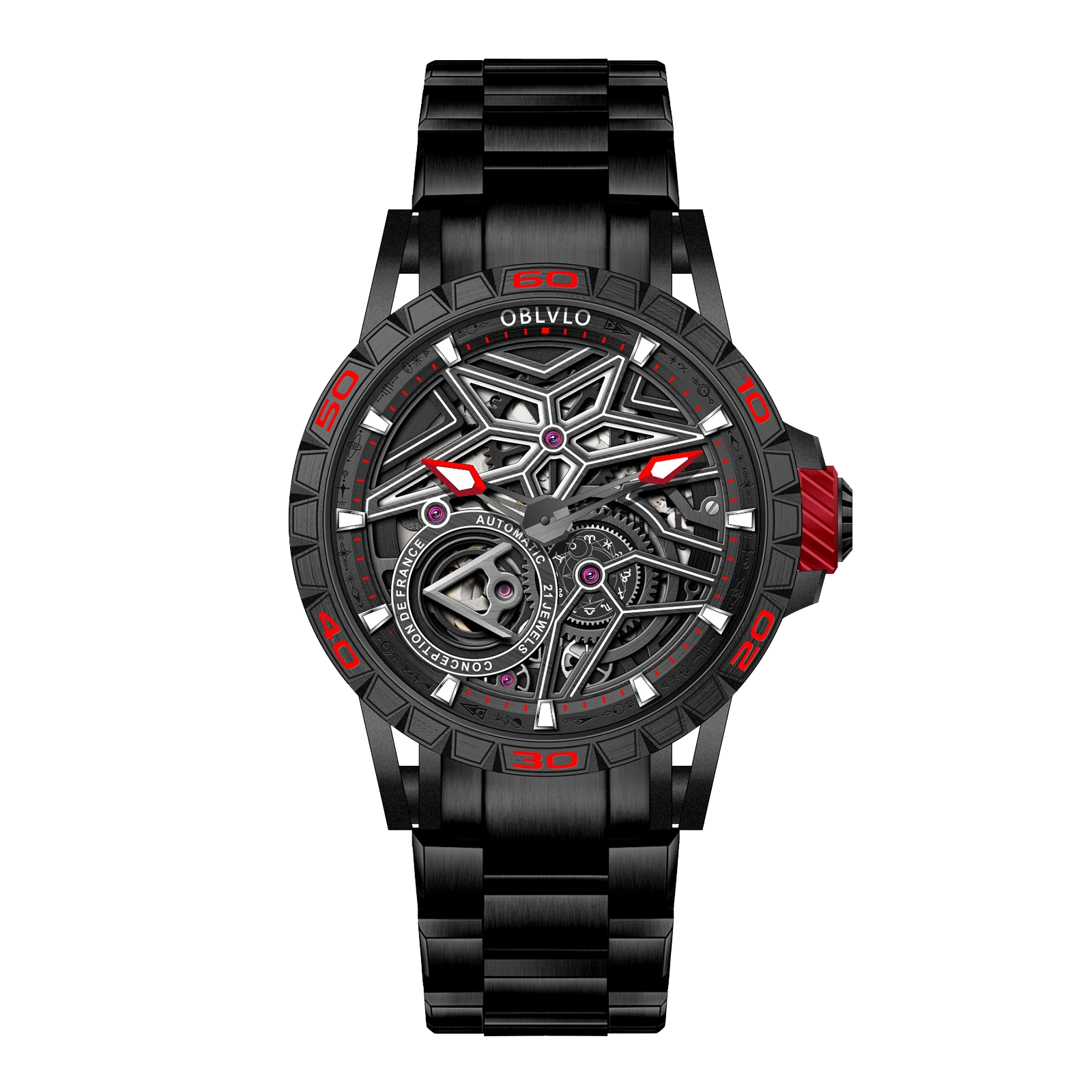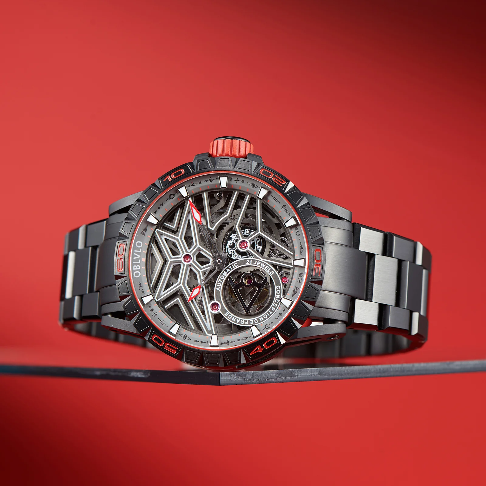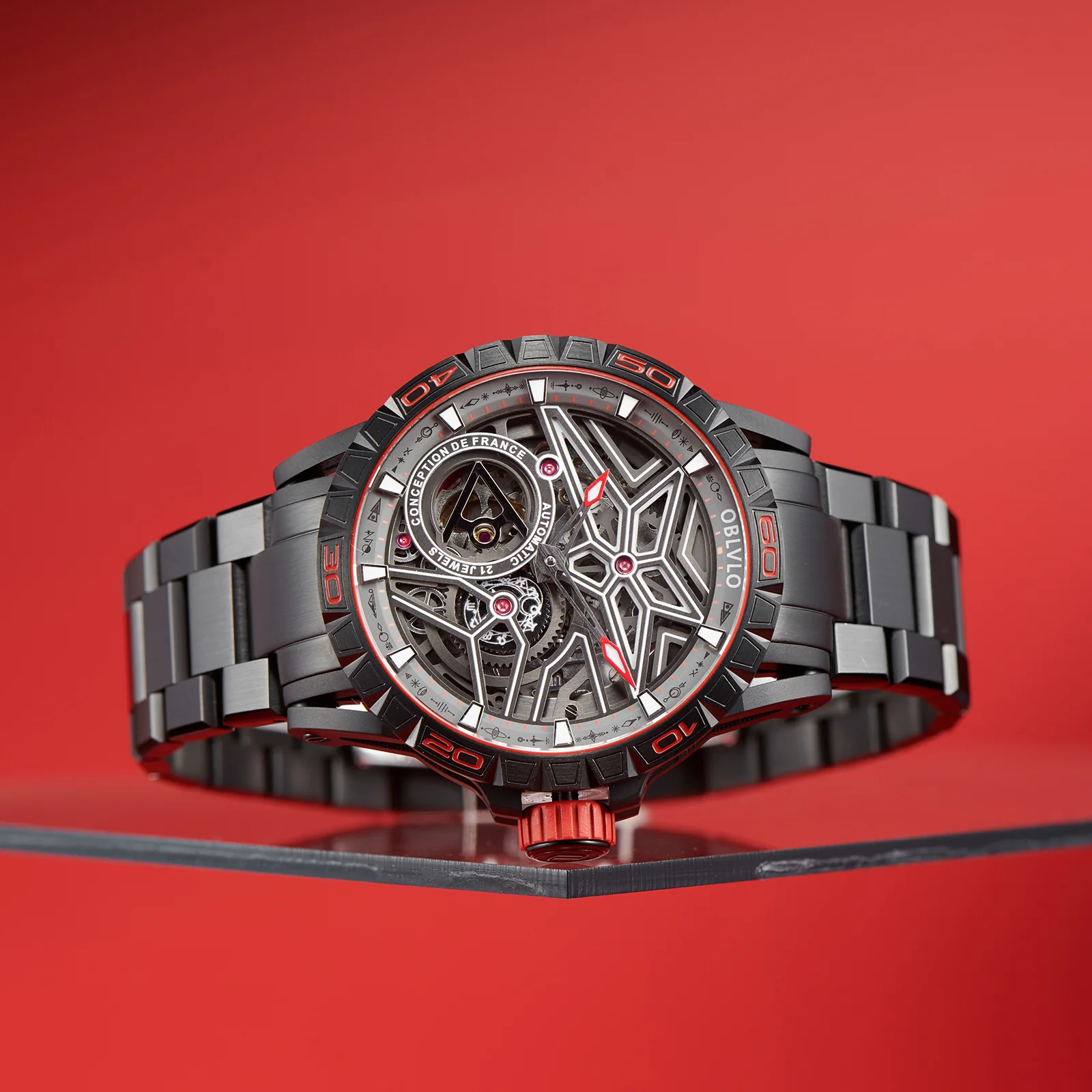 Dial Design: Panoramic skeleton mechanical design with super luminous, platinum-plated steel hands.12 constellations plate It's second hand of a watch.