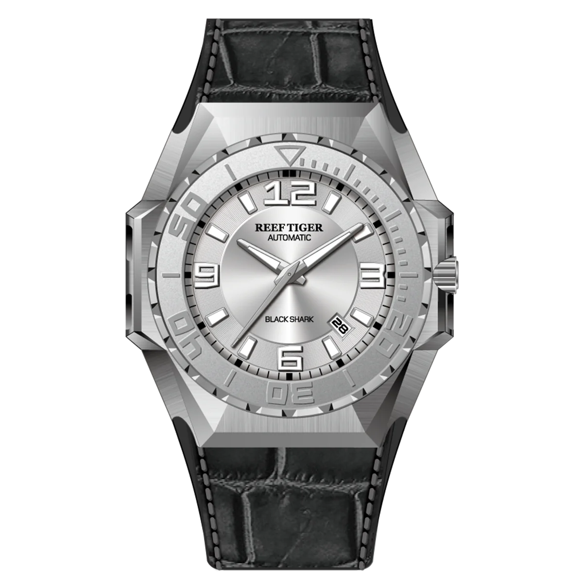 Reef Tiger RGA6903 Mens Military Automatic Mechanical Watches - Blue Silver Dial & 200M Waterproof