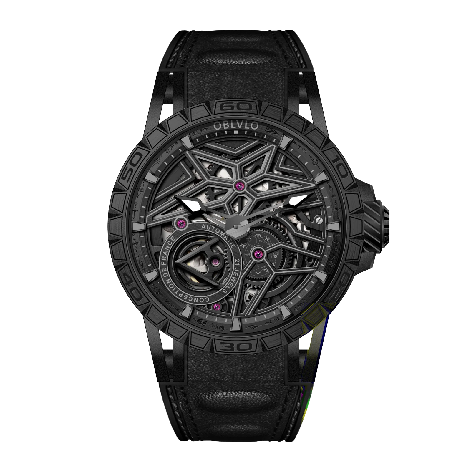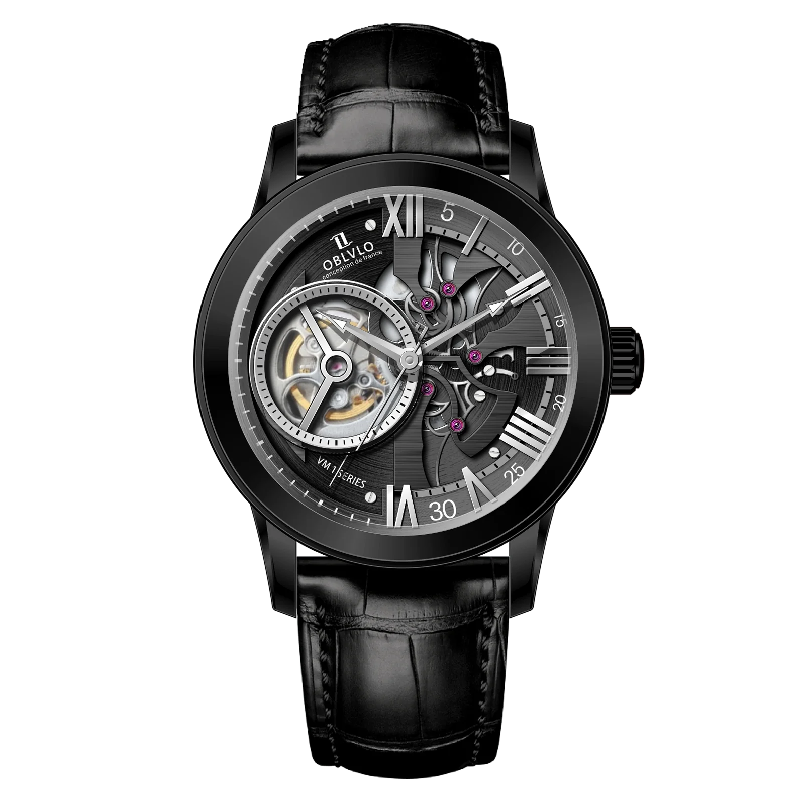 Luxury OBLVLO VMQ Series - Affordable All Black/Diamond Zirconia Case Mens Automatic Tourbillon Style Dial Dress Watches