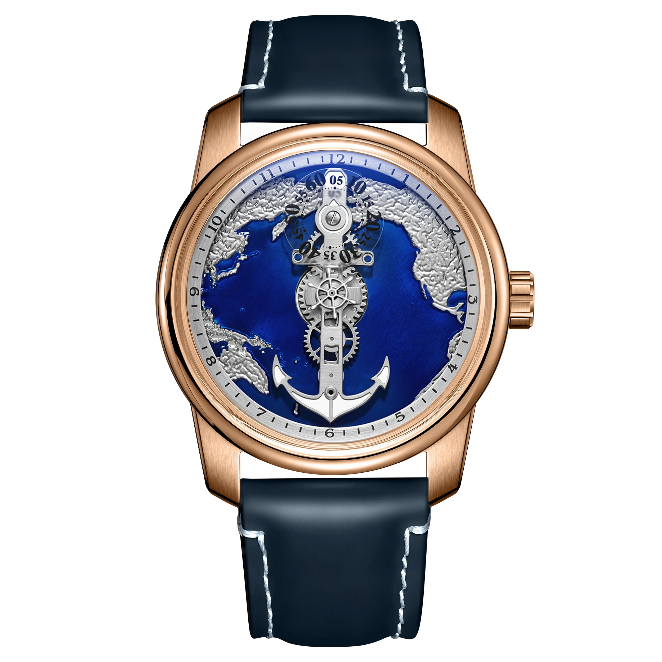 Best Affordable OBLVLO JM-Sailing Rose Gold Case & Blue Cold Enamel Dial Automatic Waterproof Business Watches For Mens