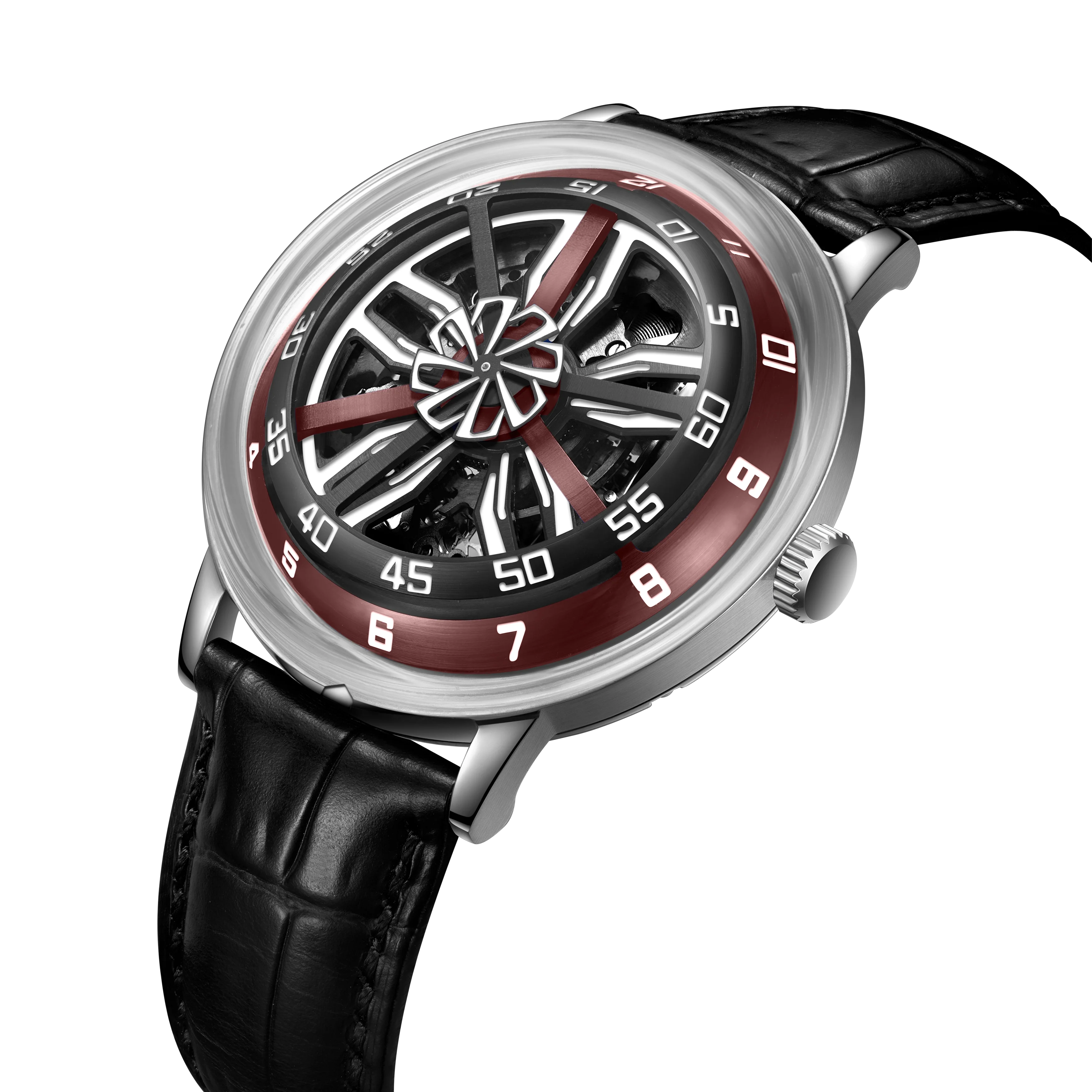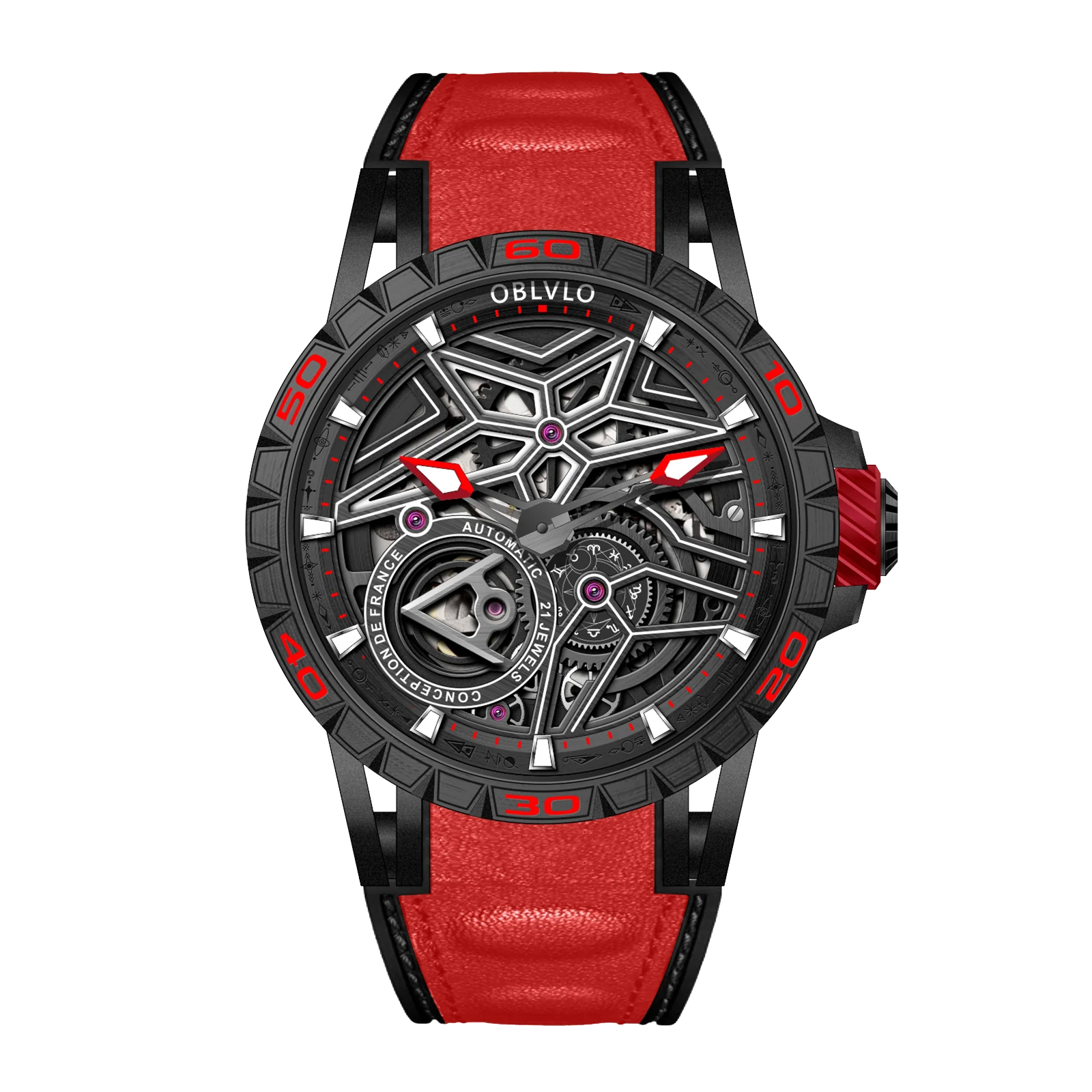 OBLVLO SCM-SK Unique Red Skeleton 42mm Supercar Alloy Wheels Dial Watches - Men Automatic Super Luminous Mechanical Mens Dive Watch