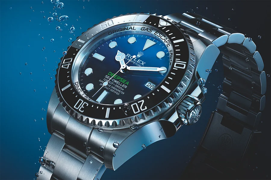 Commemorating James Cameron’s historic solo dive. From brilliant blue to bottomless black, its two-colour gradient dial celebrates one man’s journey to the deepest place on earth: the bottom of the Mariana Trench.
