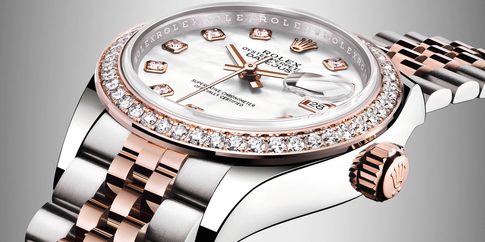 The Oyster case is matched with a diamond-encrusted bezel, and the sides of the case and lugs reflect an elegant luster, making the outline of the 28 mm Oyster case more prominent and more attractive. As a Rolex classic ladies' watch, the ladies' timepiece is the continuation and sublimation of the brand's classic timepiece, and has always been synonymous with elegant style and precise timepieces.