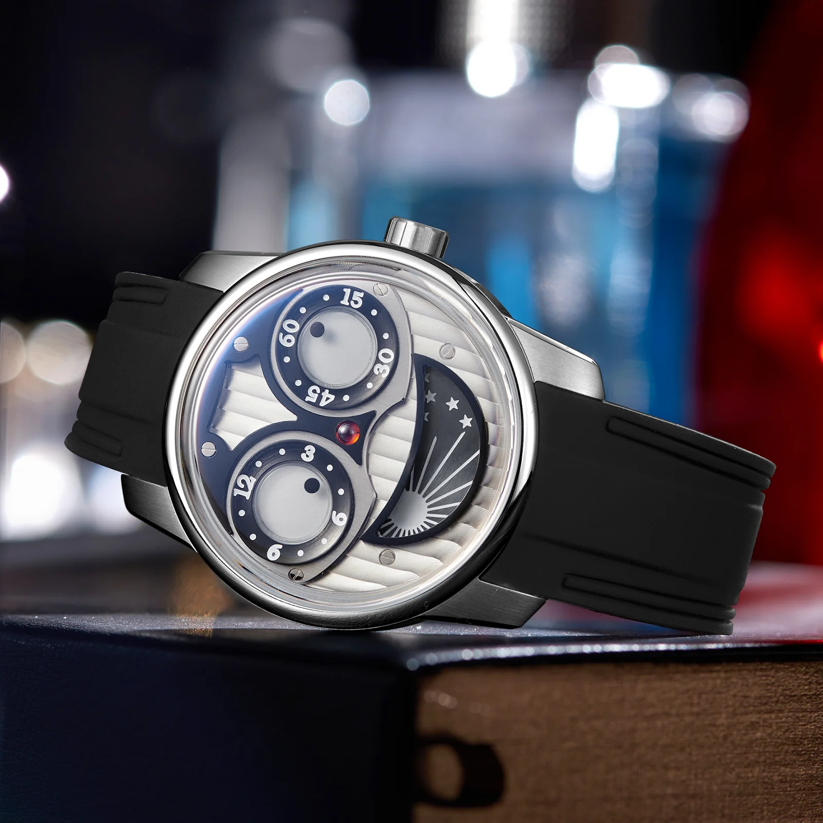 Dial Design: Silver Gradient, Unique Automatic Indices & Moon phases