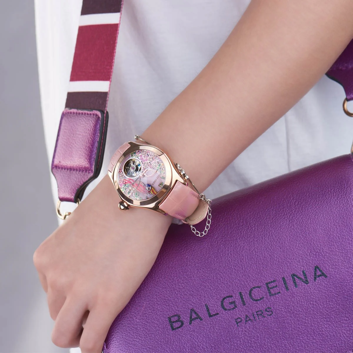 Dial Design: White Dial & Watch face is designed with Diamond citron crested cockatoo Dial & tourbillon style dial.
